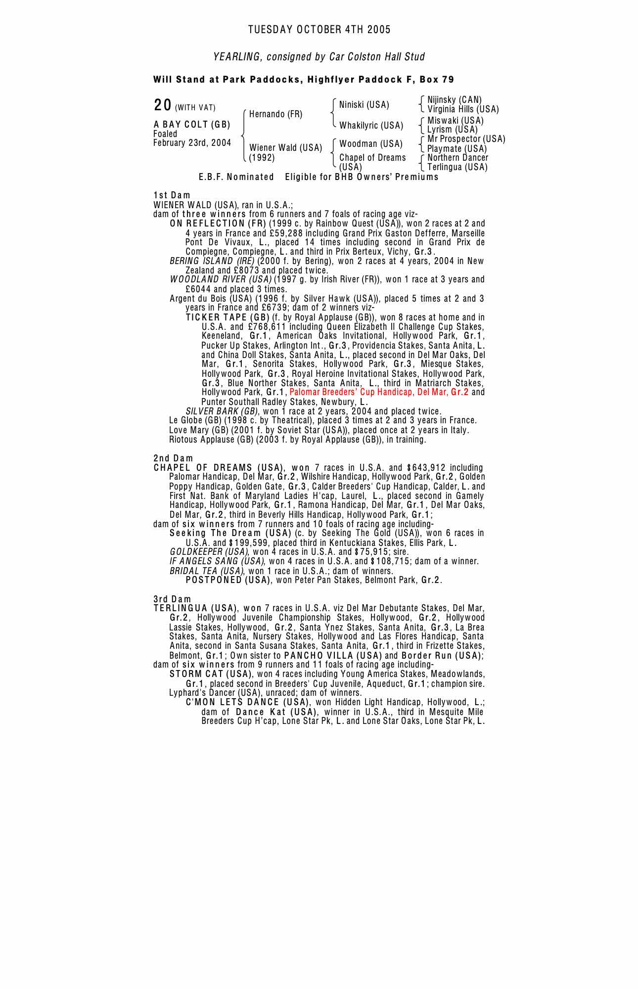 October Yearling Sale 2002 lot 804 F. by Soviet Star (USA) 2001, Car Colston Hall Stud=>Bozzi Bloodstock Services 5,000 gns