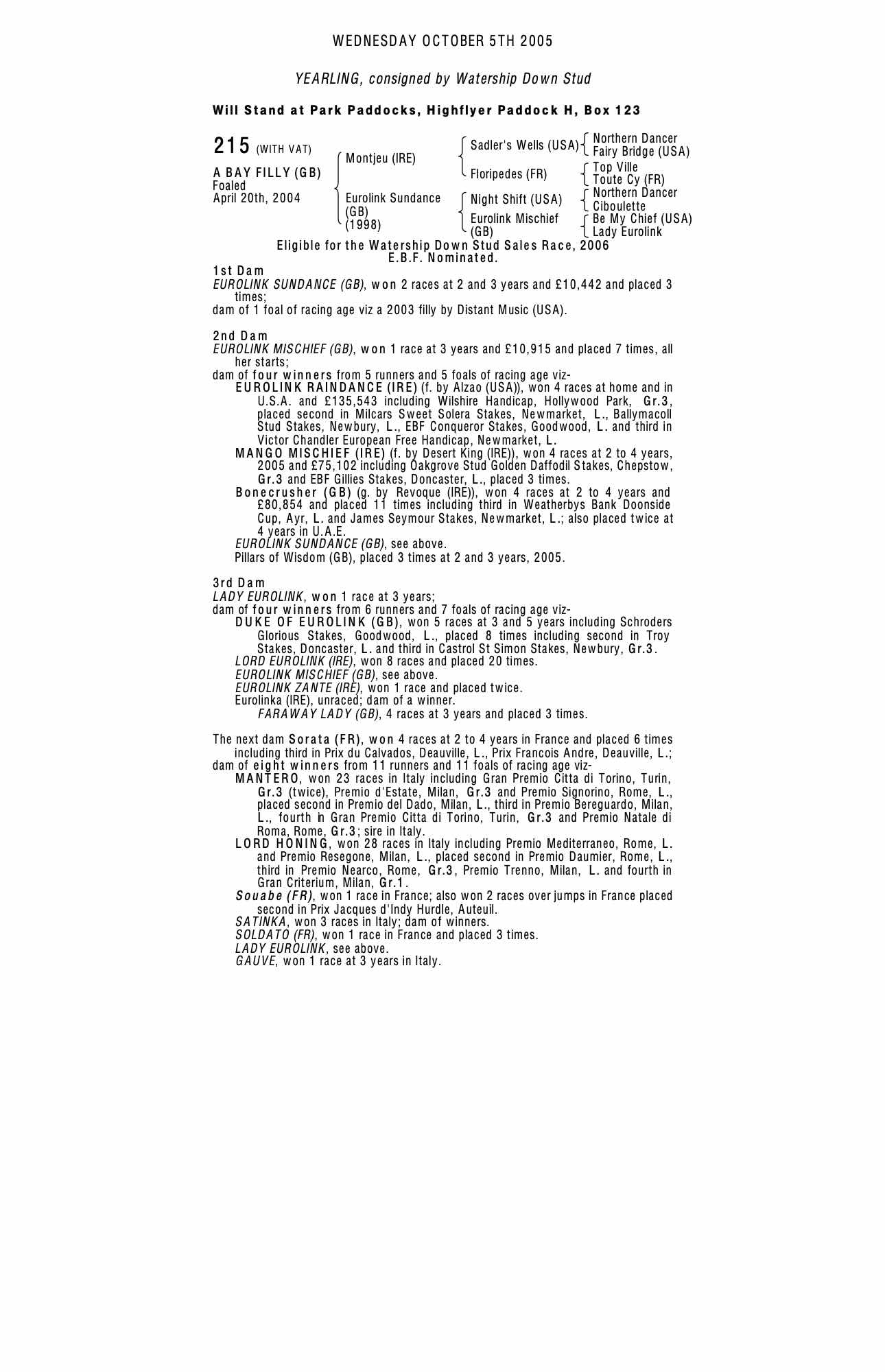 October Yearling Sale, Book 1 2006 lot 122 F. by Cadeaux Genereux 2005, The Castlebridge Consignment=>Edward Dunlop 19,000 gns