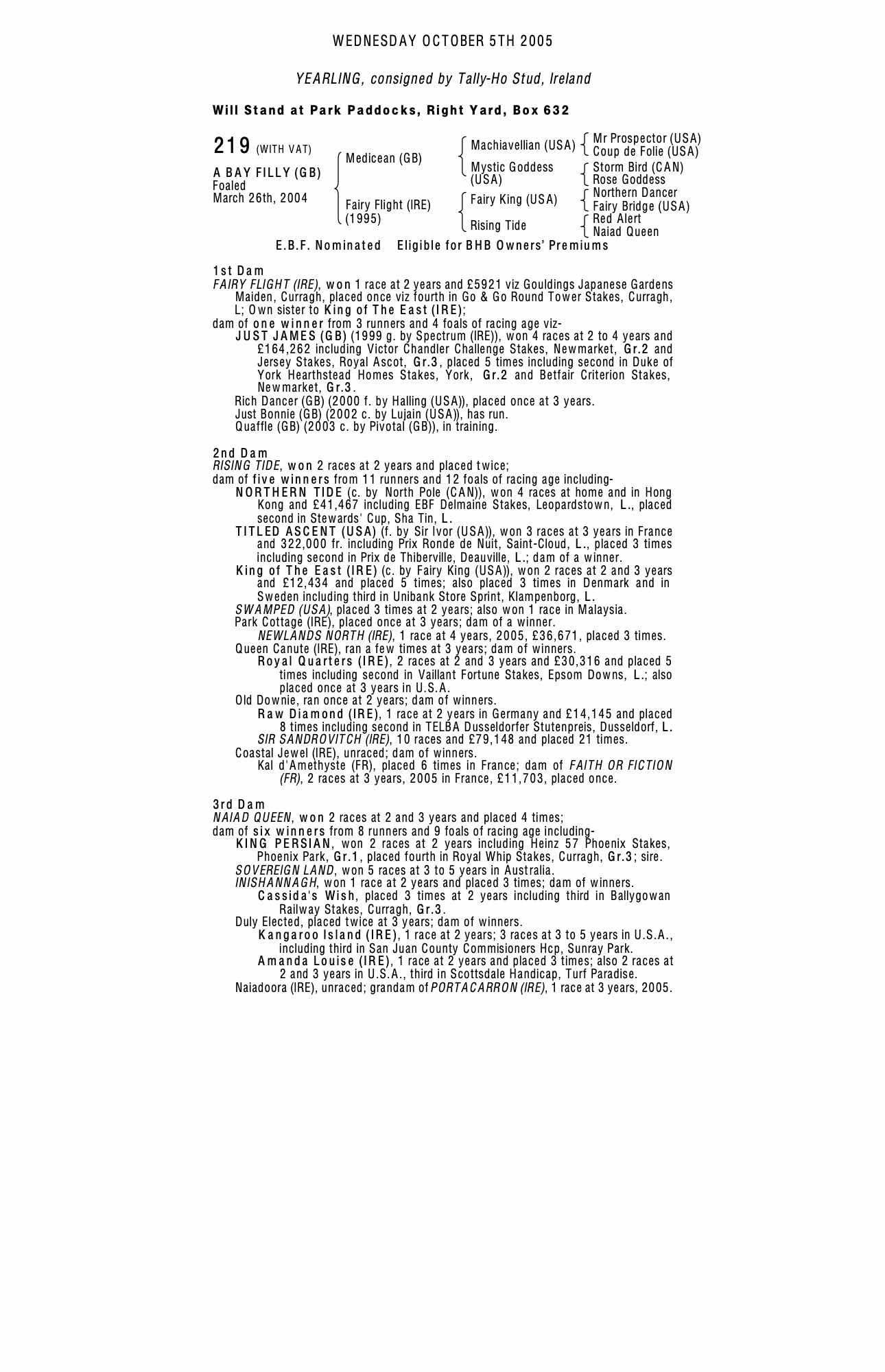 Consignor: Tally-Ho Stud, Ireland