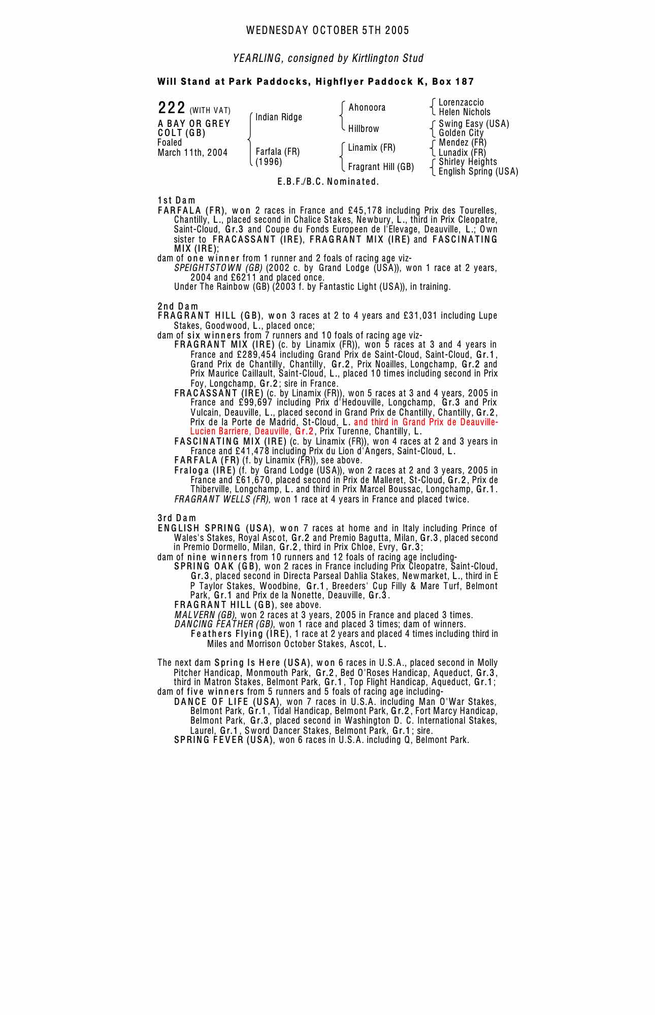 October Yearling Sale, Book 1 2004 lot 94 F. by Fantastic Light (USA) 2003, Kirtlington Stud=>Middle Park Stud 52,000 gns