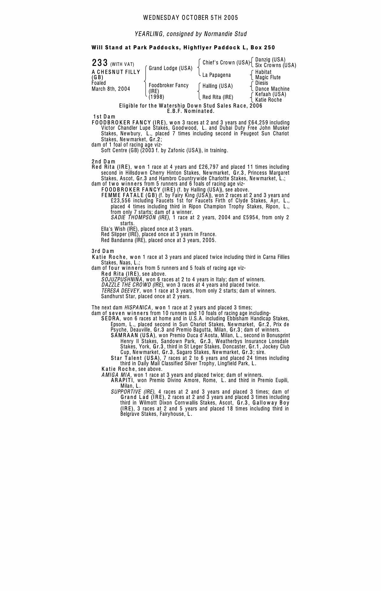 October Yearling Sale, Book 1 2004 lot 275 F. by Zafonic (USA) 2003, Normandie Stud=>Mead, Goodbody 150,000 gns