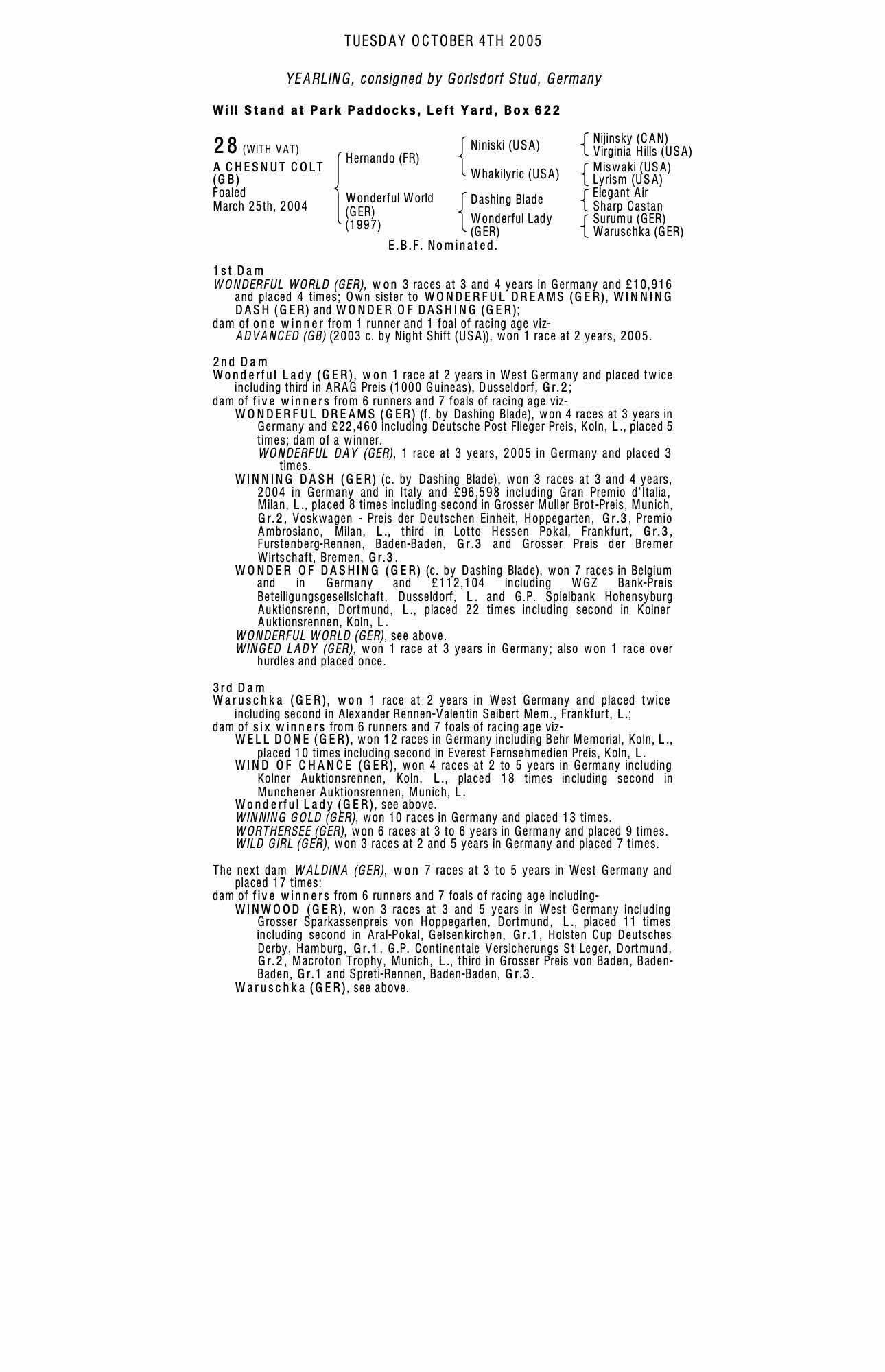October Yearling Sale, Book 1 2004 lot 403 Western Echo (GB) (C. by Night Shift (USA)), Gorlsdorf Stud, Germany=>C Gordon-Watson Bloodstock 55,000 gns