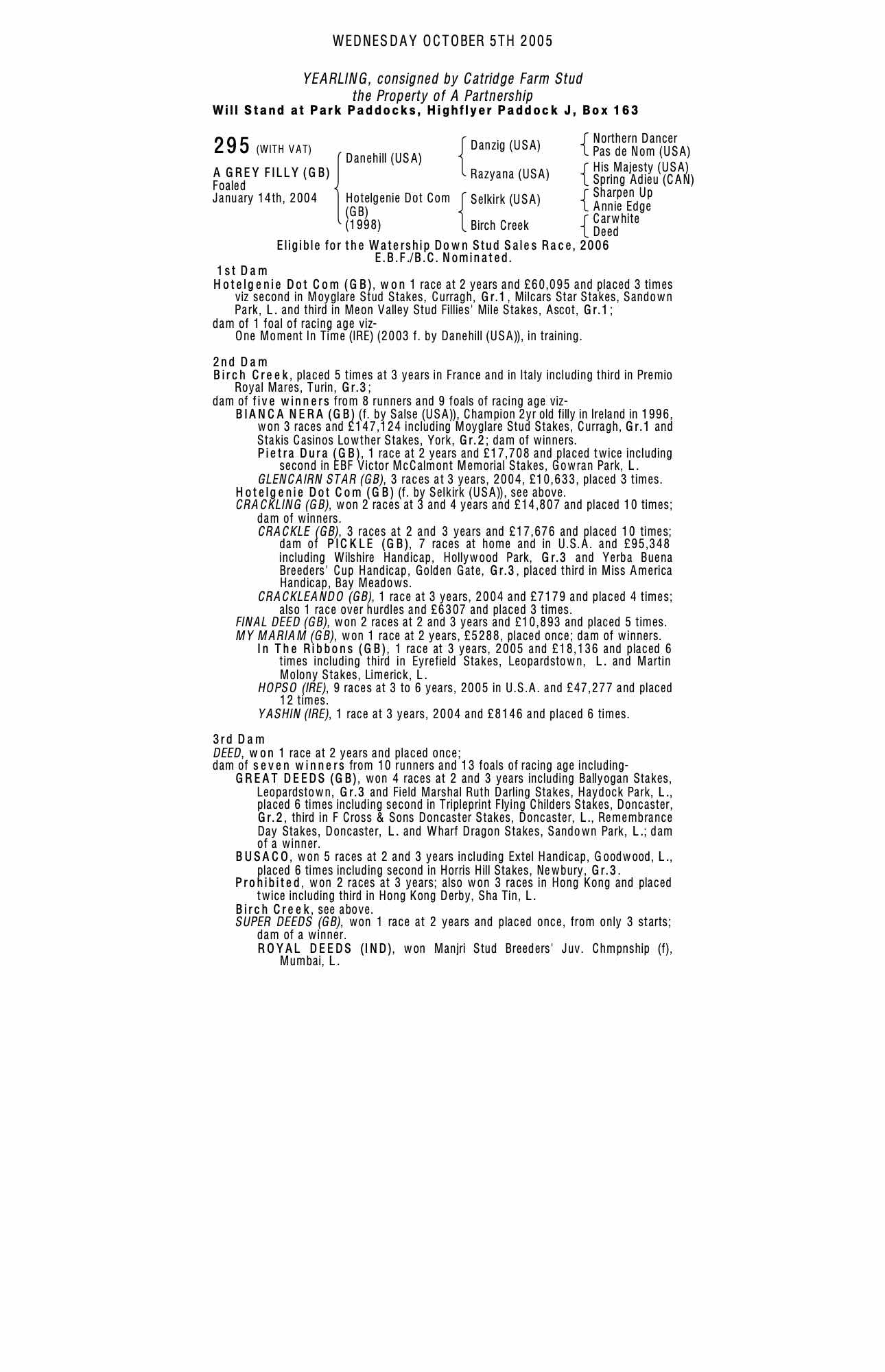 October Yearling Sale, Book 1 2004 lot 116 F. 2003, Catridge Farm Stud=>Demi O'Byrne 520,000 gns