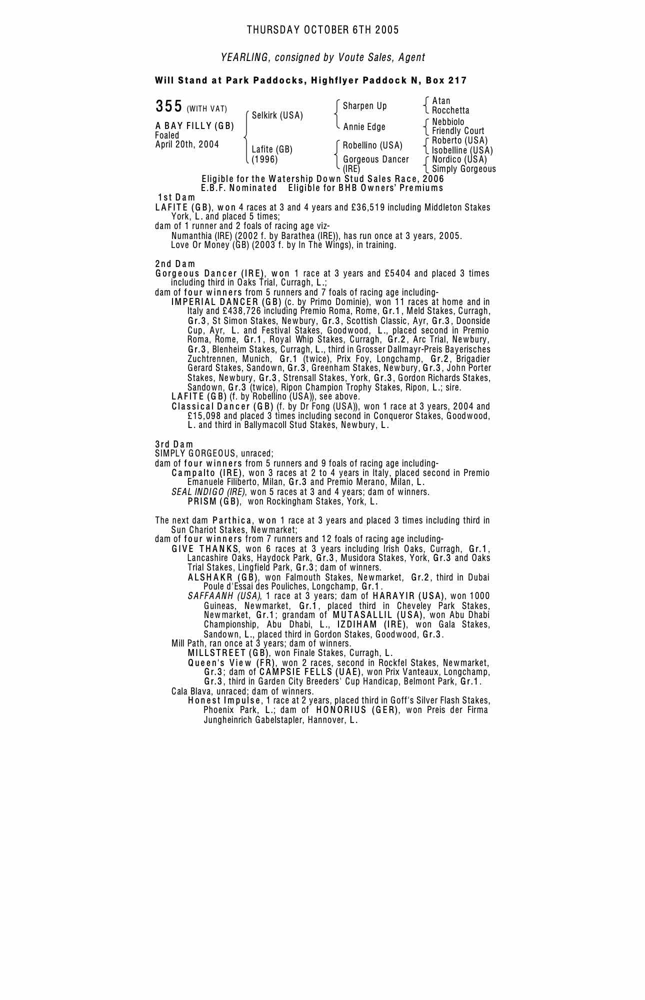 October Yearling Sale, Book 1 2004 lot 746 F. by In The Wings 2003, Jamie Railton, Agent=>Vendor 50,000 gns