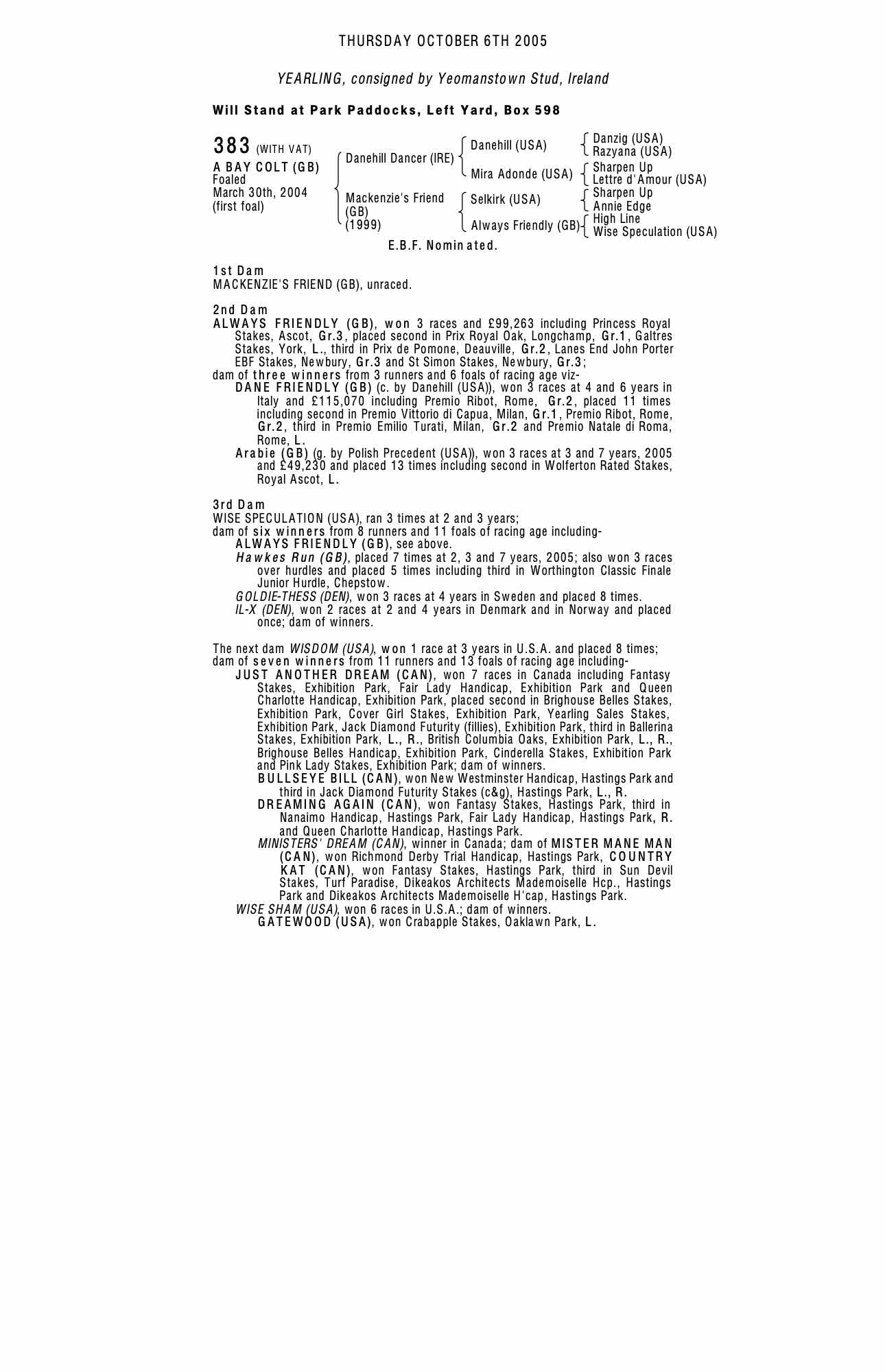 October Yearling Sale, Book 2 2006 lot 1120 C. by Dr Fong (USA) 2005, Kingwood Stud=>Margaret O'Toole 52,000 gns