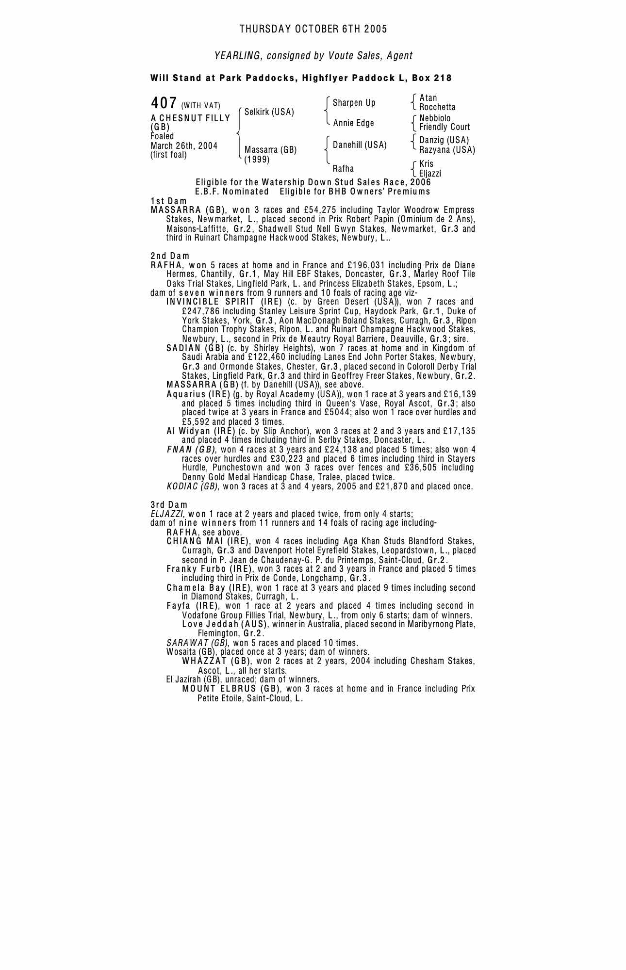October Yearling Sale, Book 1 2007 lot 173 F. by Dalakhani (IRE) 2006, Whatton Manor Stud=>BBA Ireland 150,000 gns