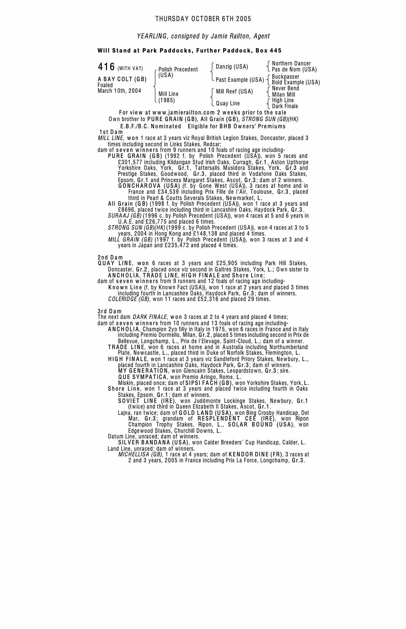 October Yearling Sale, Book 1 2006 lot 311 F. 2005, Jamie Railton, Agent=>BBA Ireland 110,000 gns