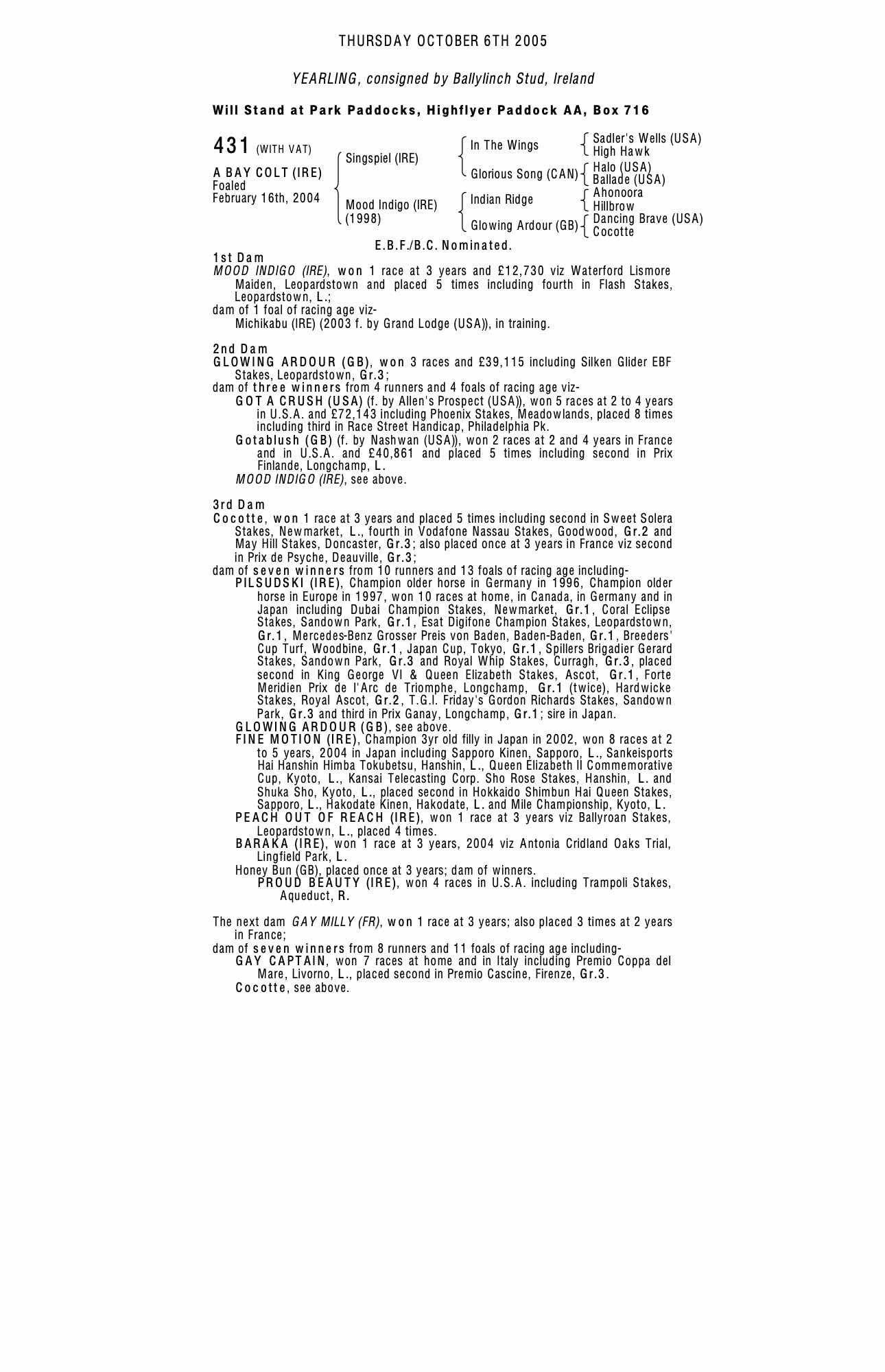 Breeze Up Sale 2006 lot 193, Ballylinch Stud, Ireland=>Lot Not Sold 32,000 gns