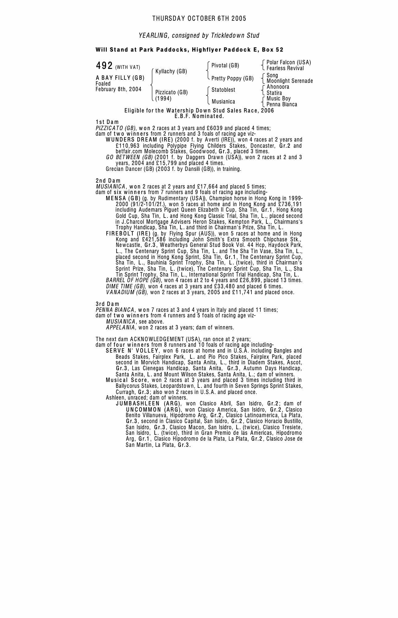 October Yearling Sale, Book 2 2004 lot 1060 F. by Dansili (GB) 2003, Trickledown Stud=>A Skiffington 100,000 gns