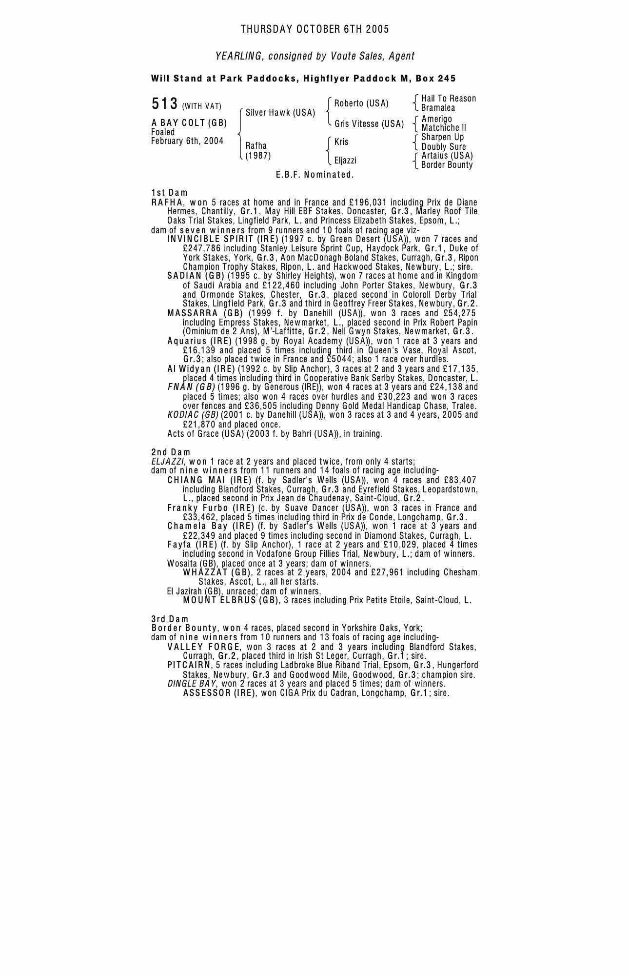 October Yearling Sale, Book 1 2006 lot 413 C. by Red Ransom (USA) 2005, Voute Sales Ltd. (Agent)=>Vendor 100,000 gns