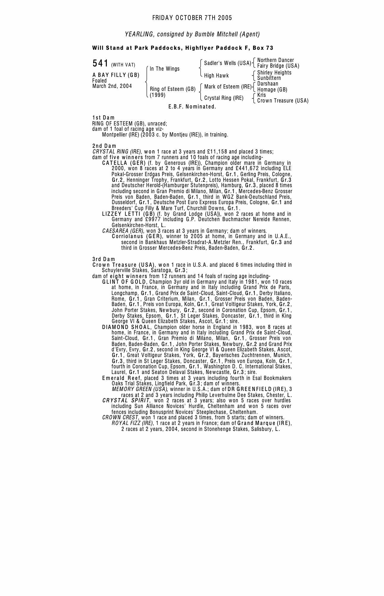 July Sale 2023 lot 85 Esteemable (GB) (M. by Nayef (USA)), Kirtlington Park Stud=>Valfredo Valiani 11,000 gns