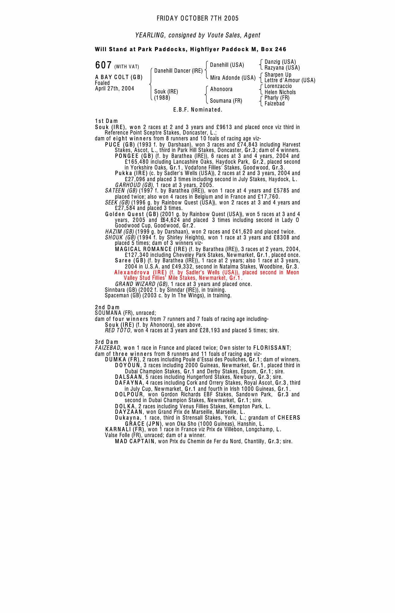 Houghton Yearling Sale 2002 lot 95 C. by Rainbow Quest (USA) 2001, Voute Sales, Agent=>Mark Johnston 27,000 gns
