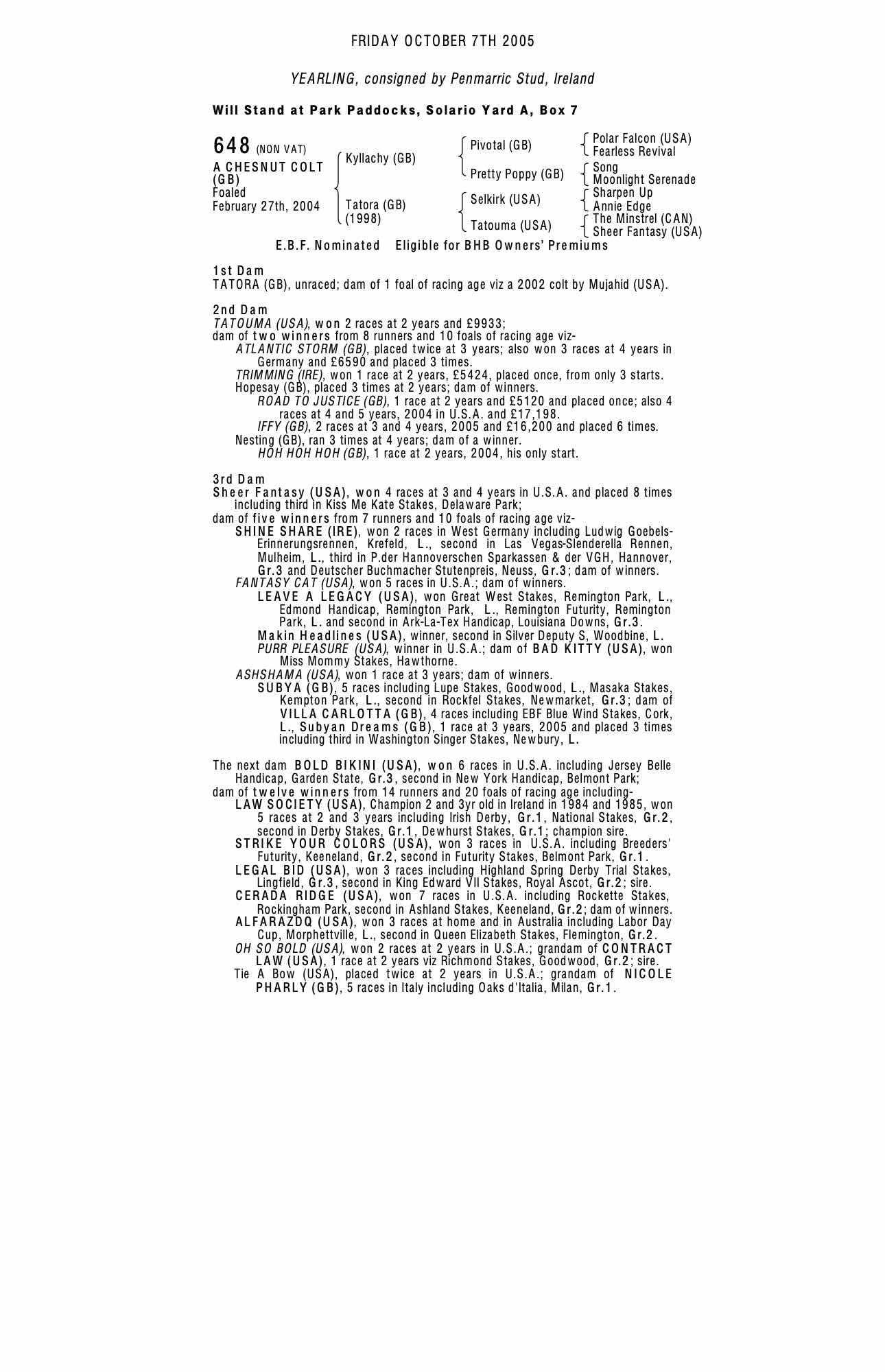 October Yearling Sale, Book 1 2007 lot 442 F. by Elnadim (USA) 2006, Tally-Ho Stud, Ireland=>Vendor 44,000 gns