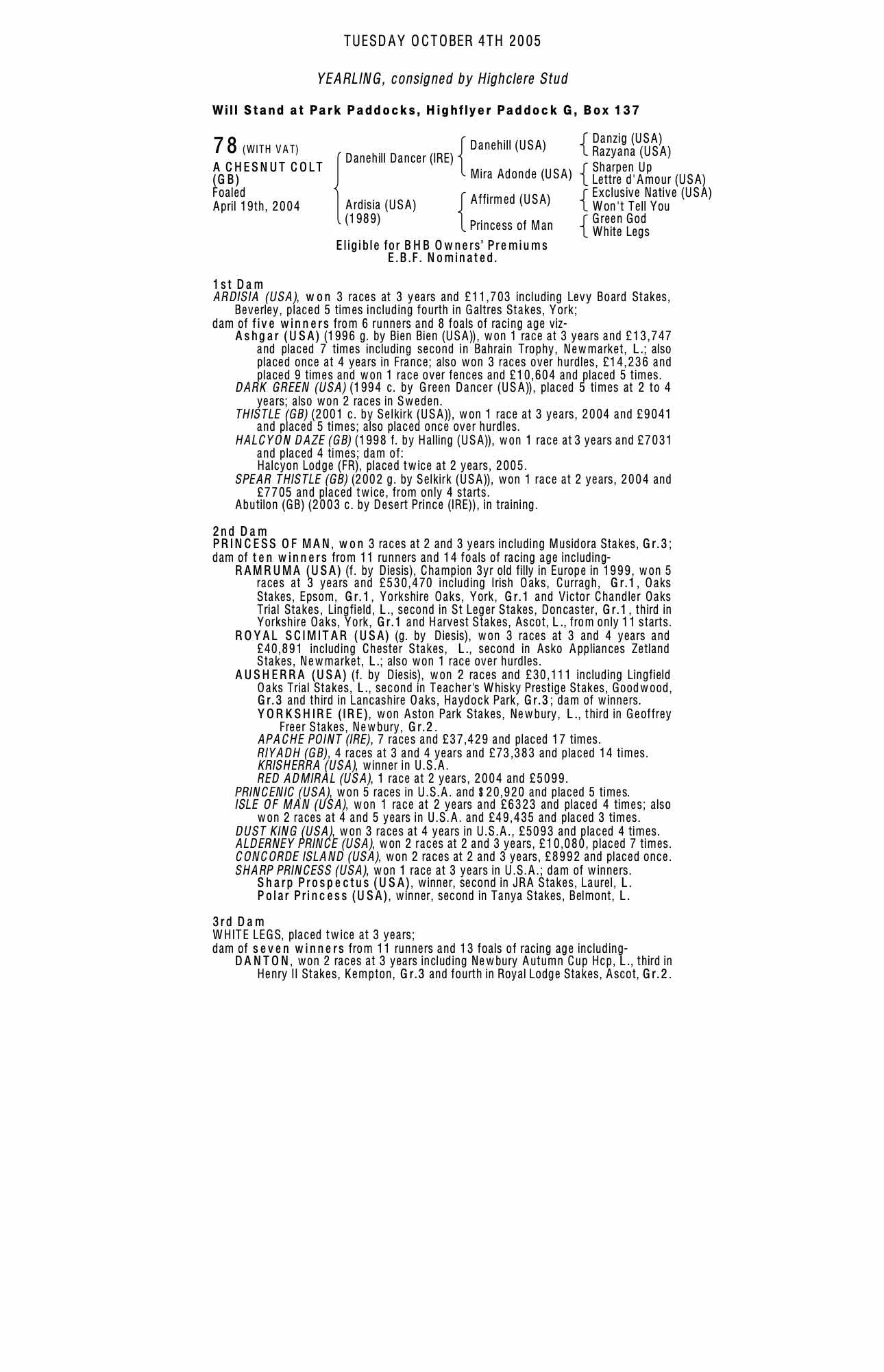 Autumn Horses in Training Sale 2004 lot 396 Thistle (GB) (C. by Selkirk (USA)), Manton House Stables=>JH Johnson 90,000 gns