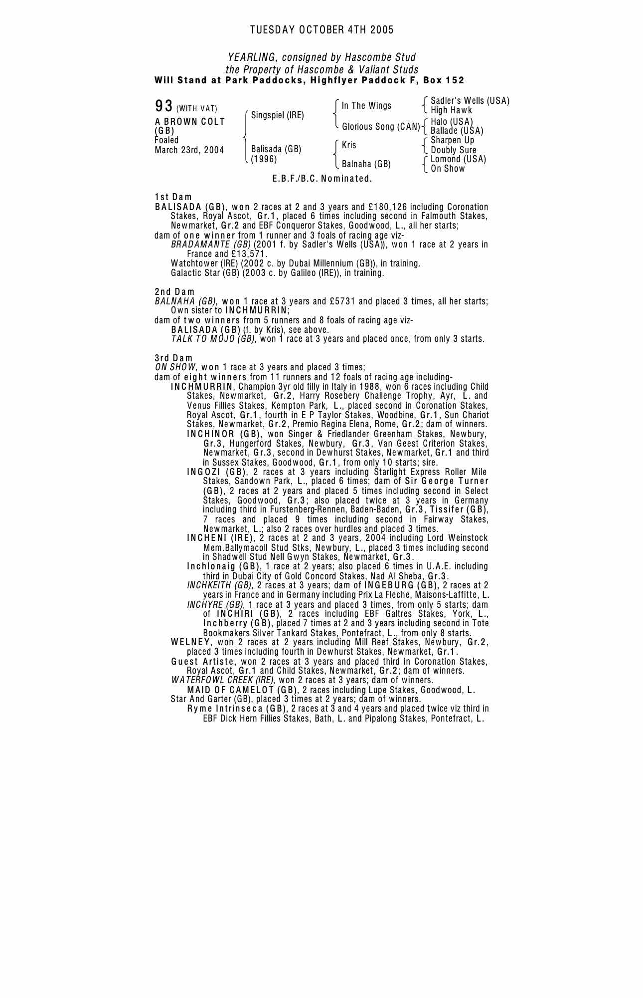 October Yearling Sale, Book 1 2004 lot 237 C. by Galileo (IRE) 2003, Hascombe Stud=>C Gordon-Watson Bloodstock 700,000 gns