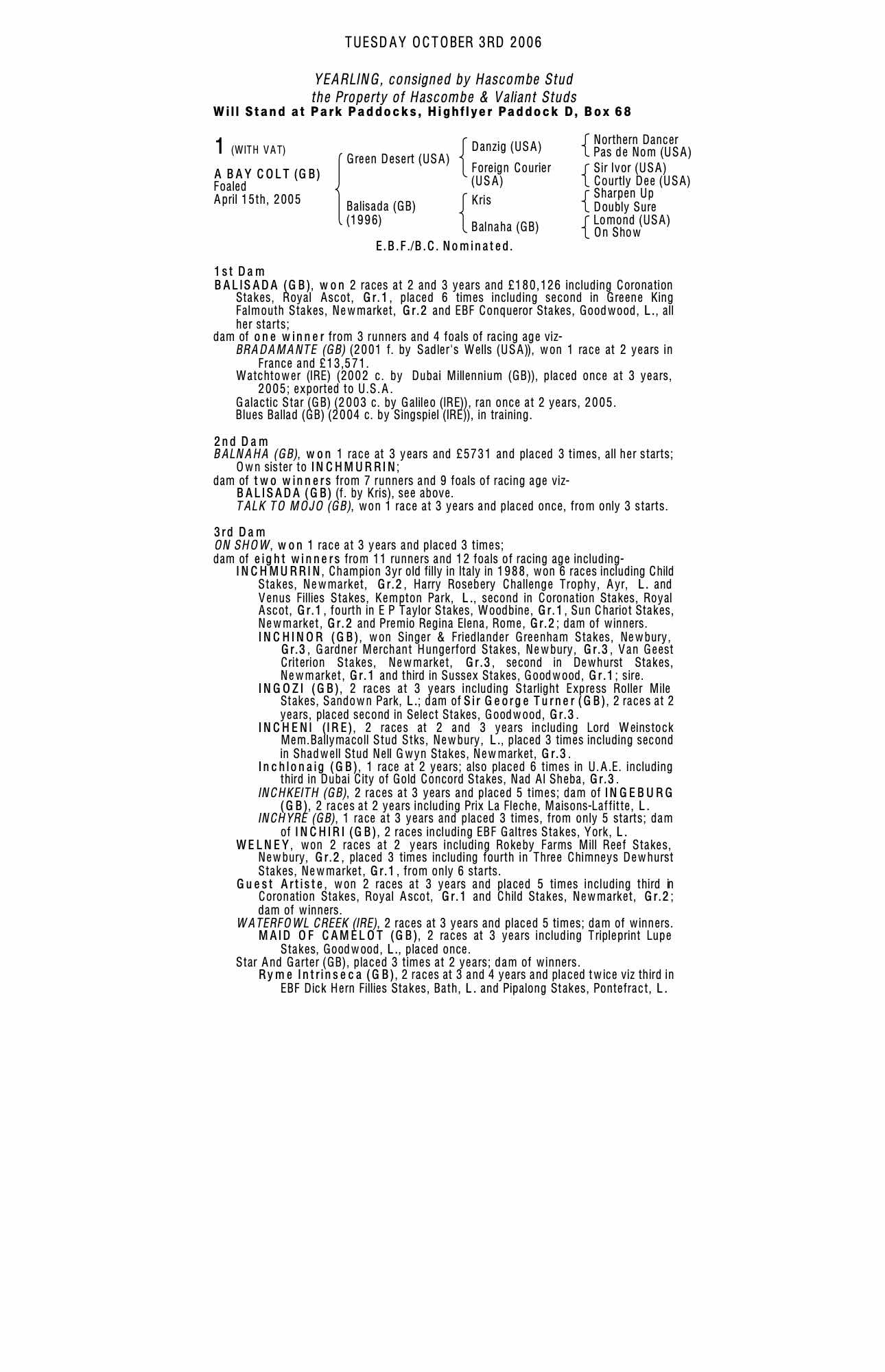 October Yearling Sale, Book 1 2005 lot 93 C. by Singspiel (IRE) 2004, Hascombe Stud=>Gainsborough Stud Management 300,000 gns