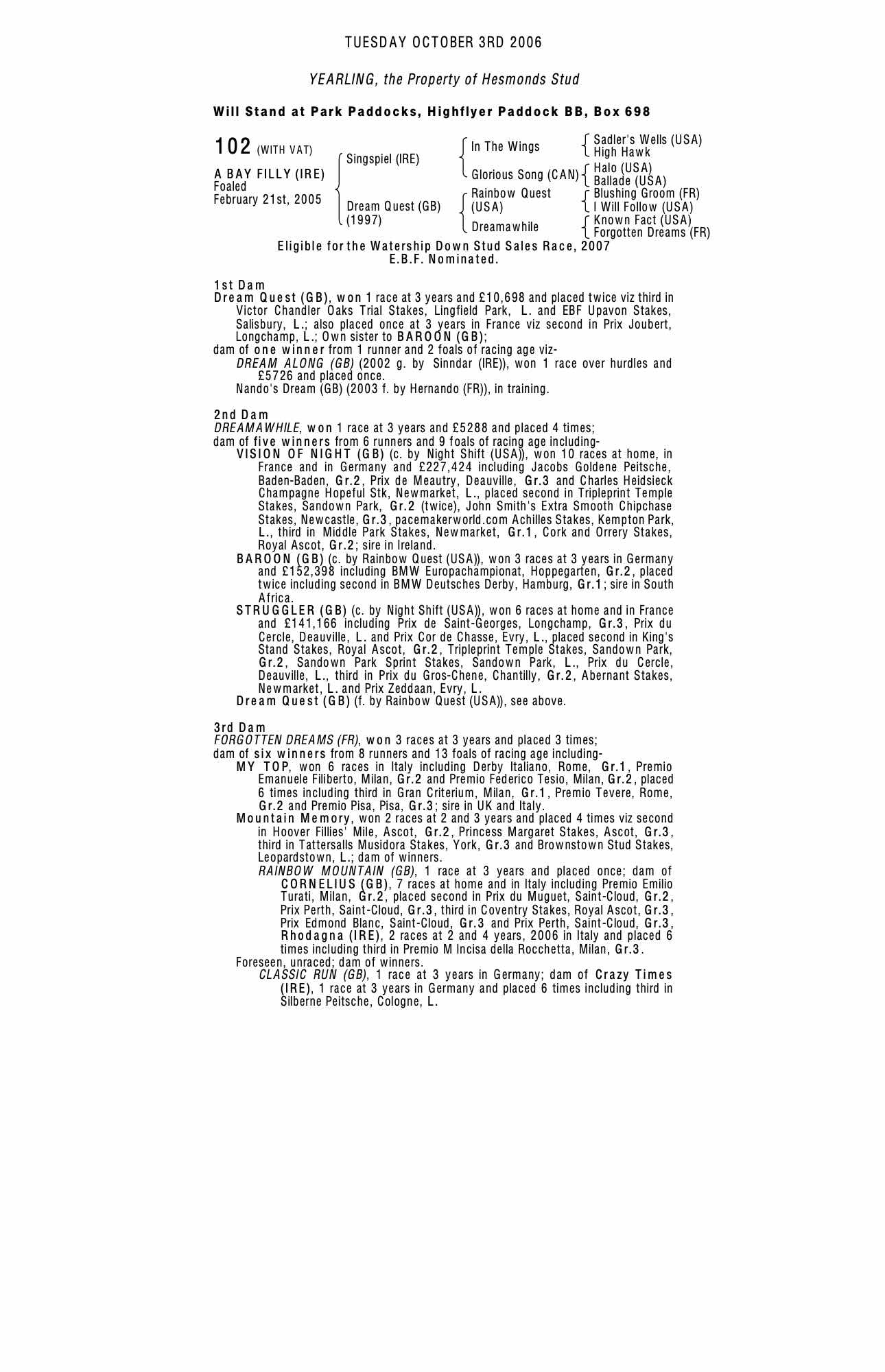 December Mare Sale 2006 lot 2623 Nando's Dream (GB) (F. by Hernando (FR)), Hesmonds Stud=>Lot Not Sold 92,000 gns