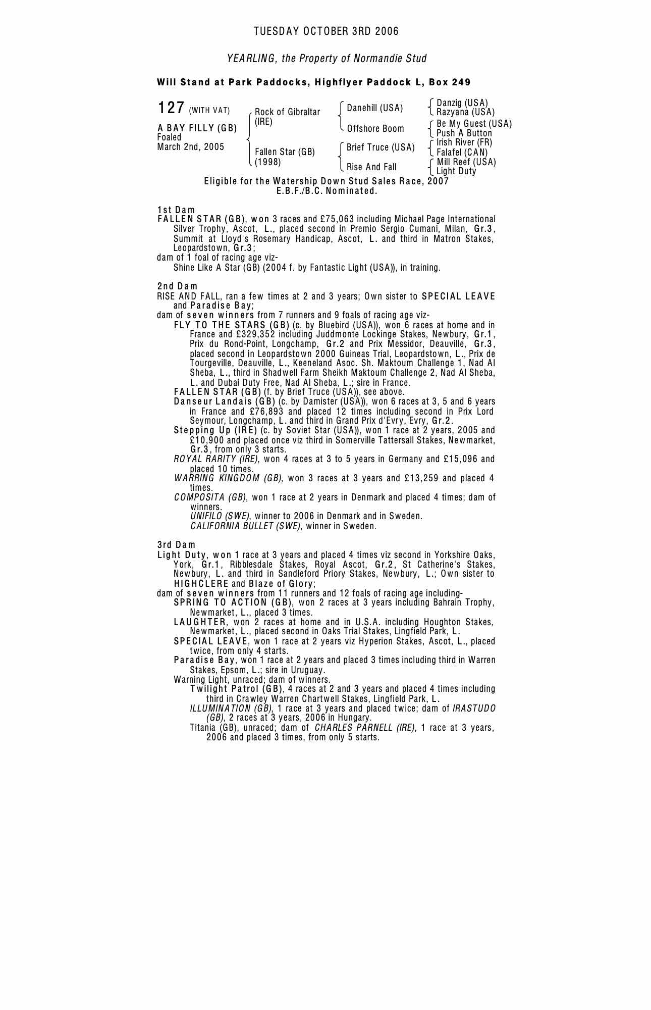 October Yearling Sale, Book 1 2005 lot 220 F. by Fantastic Light (USA) 2004, Normandie Stud=>Mead, Goodbody 60,000 gns
