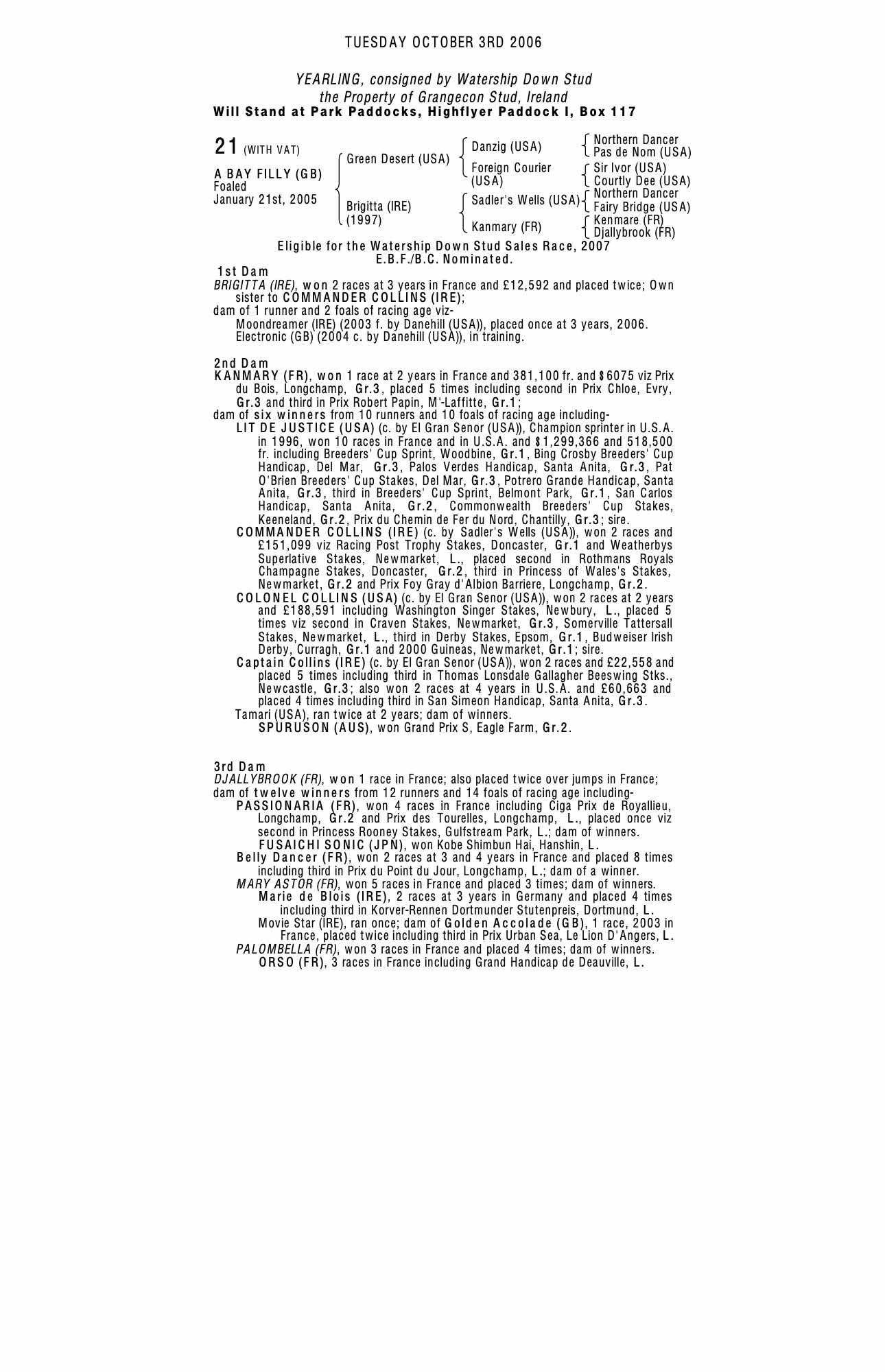 October Yearling Sale, Book 1 2004 lot 66 F. by Danehill (USA) 2003, Watership Down Stud=>BBA Ireland 500,000 gns