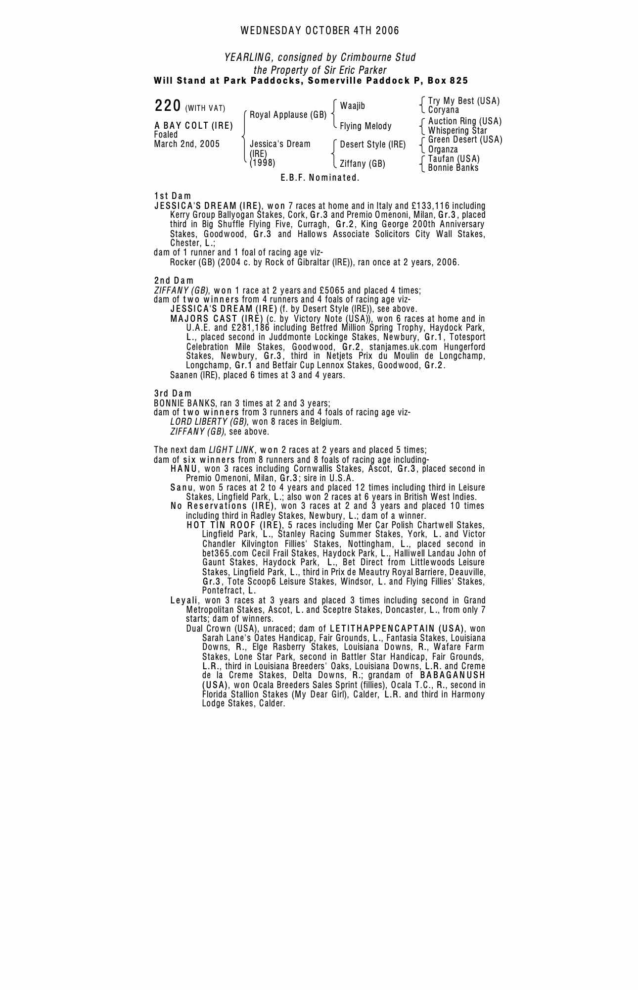 December Yearling Sale 2005 lot 173 C. by Rock of Gibraltar (IRE) 2004, The Castlebridge Consignment=>Edward F Vaughan 60,000 gns