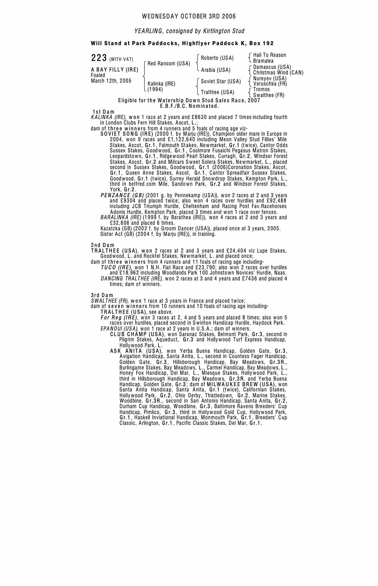 December Mare Sale 2006 lot 1572 Kazatzka (GB) (M. by Groom Dancer (USA)), Kirtlington Stud=>Seamus Kennedy 88,000 gns