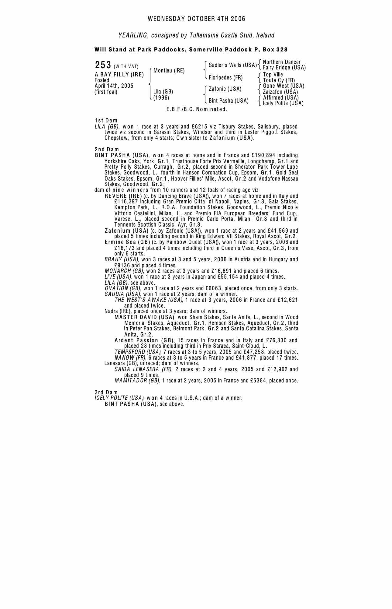 October Yearling Sale, Book 1 2010 lot 375 F. by Oratorio (IRE) 2009, Tullamaine Castle Stud, Ireland and Partners=>Vendor 40,000 gns