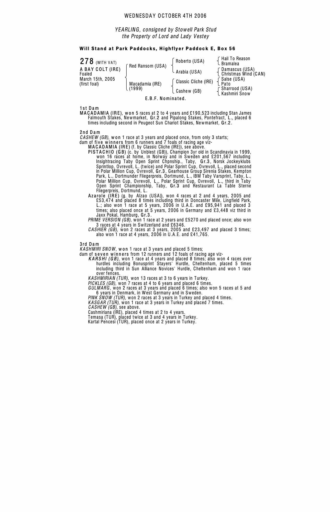 Consignor: Stowell Park Stud