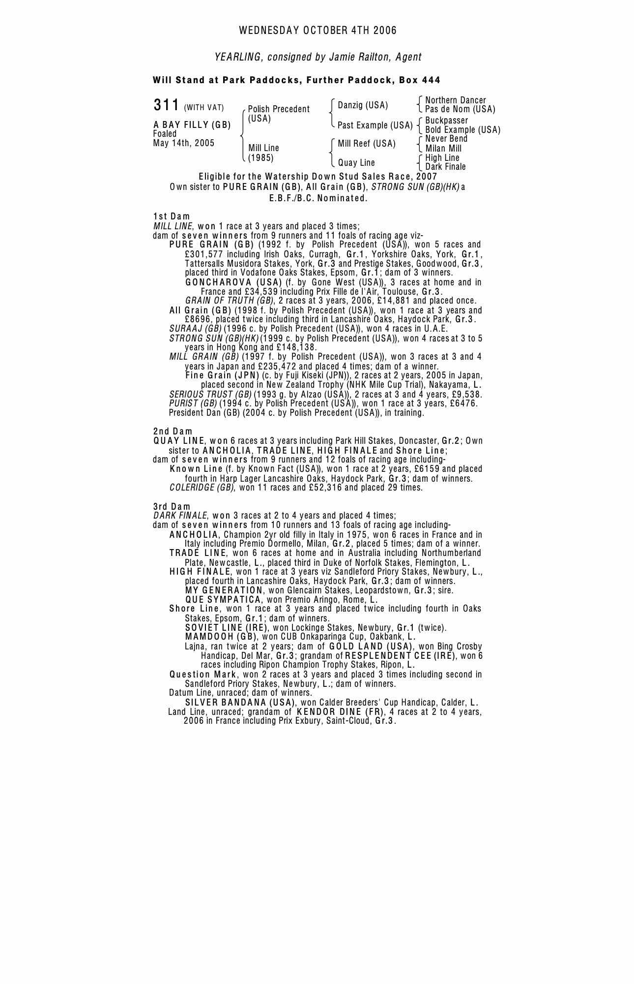 October Yearling Sale, Book 1 2005 lot 416 C. 2004, Jamie Railton, Agent=>Noel Martin 25,000 gns