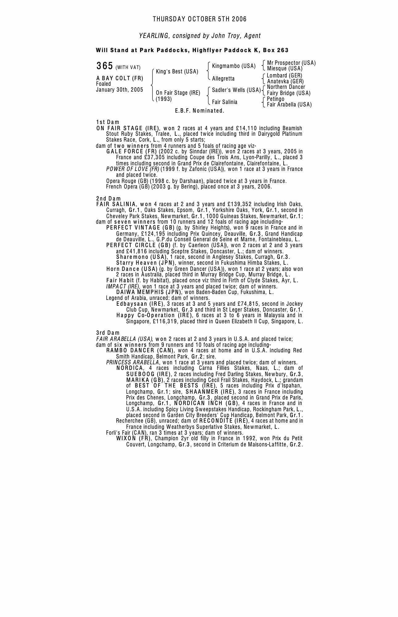 December Mare Sale 2005 lot 2173 Power of Love (FR) (M. by Zafonic (USA)), N. P. Bloodstock Ltd.=>Vendor 50,000 gns