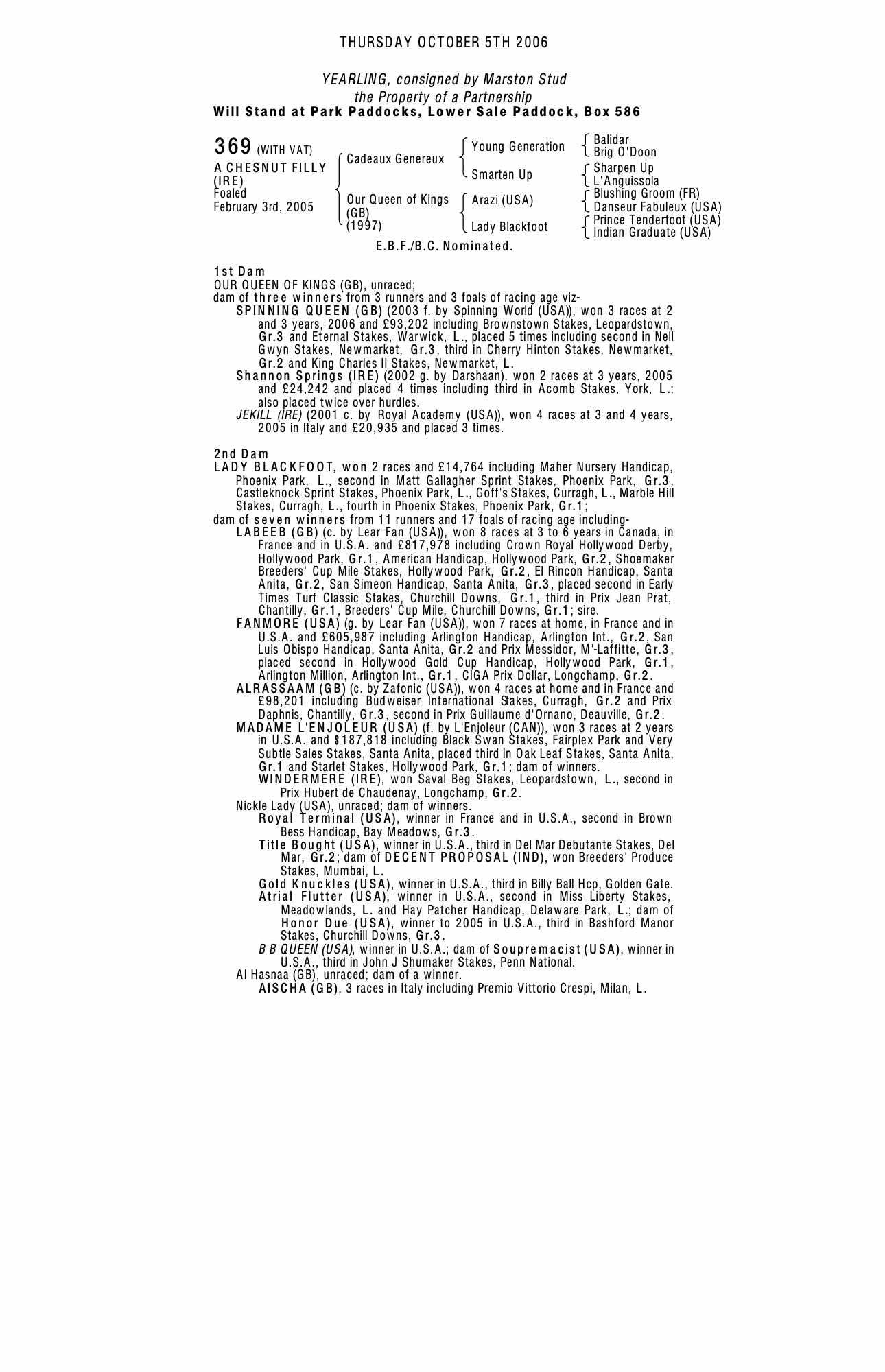 October Yearling Sale, Book 1 2003 lot 323 C. by Darshaan 2002, Marston Stud=>BBA Ireland 30,000 gns