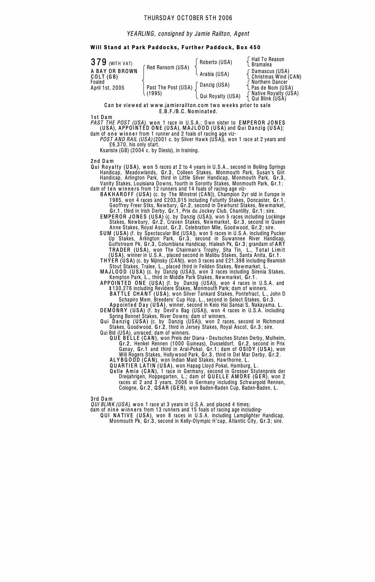 December Foal Sale 2005 lot 1205, Voute Sales, Agent=>Citywest Inc 100,000 gns