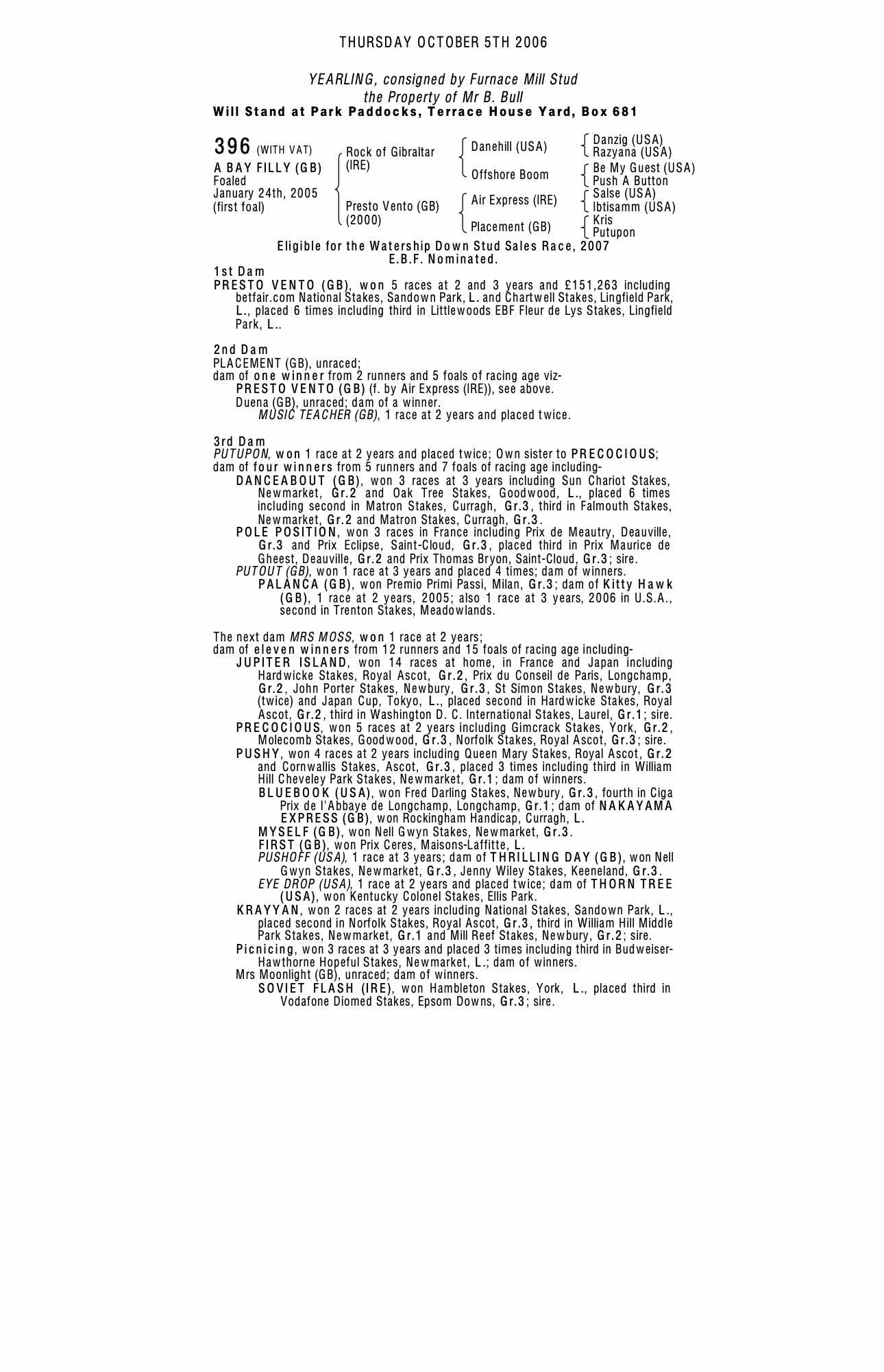 December Foal Sale 2005 lot 1101, Whitsbury Manor Stud=>Vendor 82,000 gns