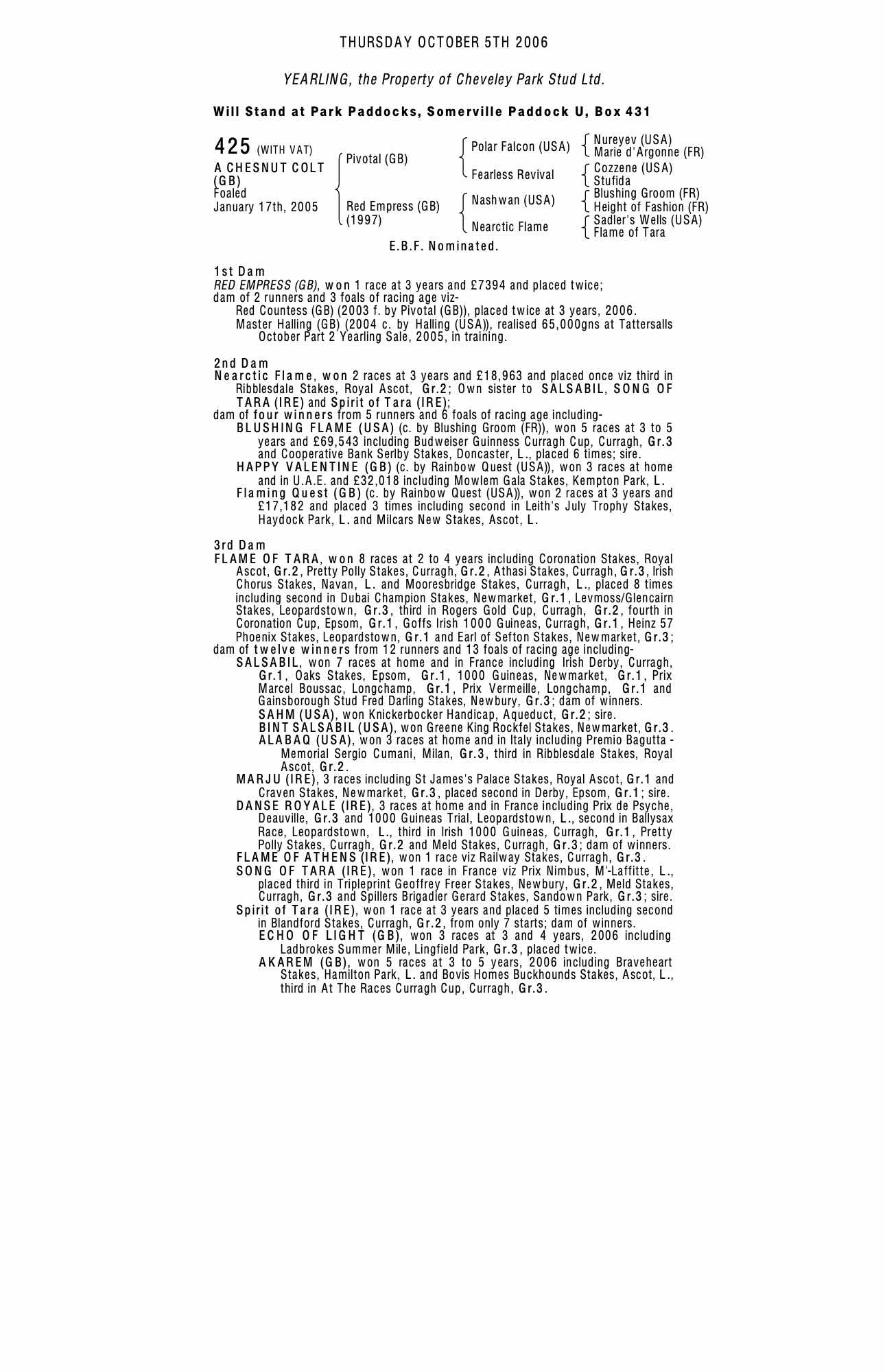 October Yearling Sale, Book 2 2005 lot 874 C. by Halling (USA) 2004, Furnace Mill Stud=>Peter Doyle Bloodstock 65,000 gns