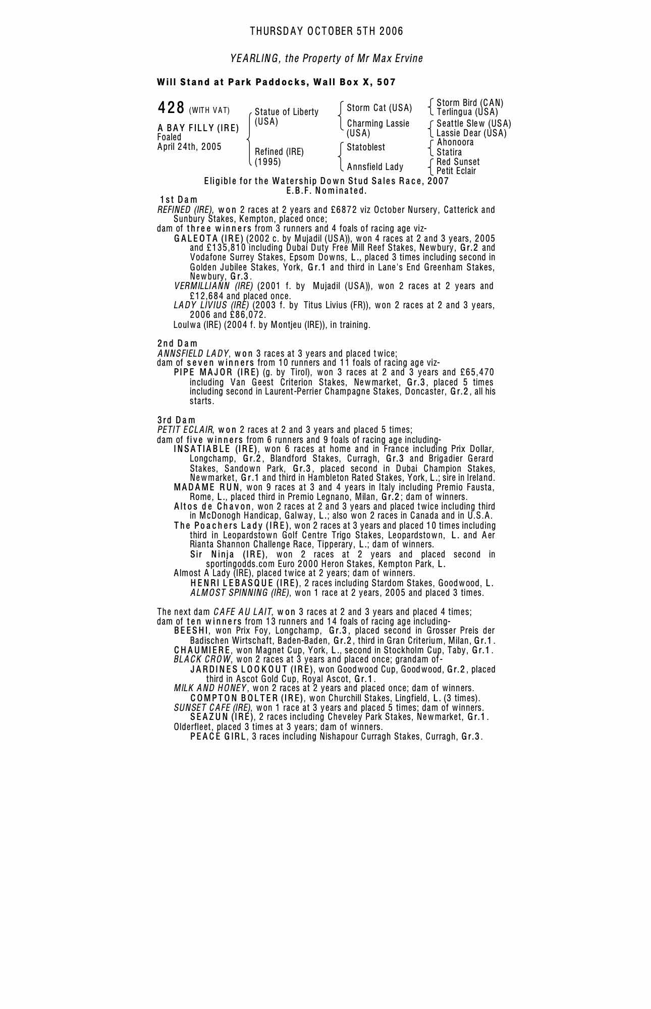 October Yearling Sale, Book 1 2005 lot 534 F. by Montjeu (IRE) 2004, Mr Max Ervine=>AO Nerses 370,000 gns