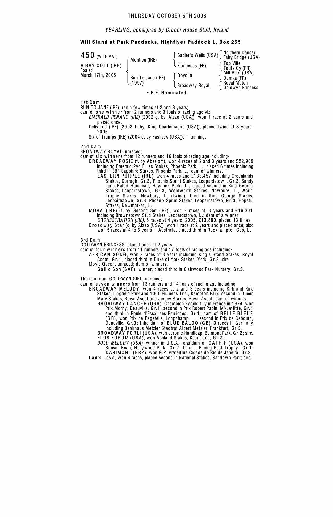 September Yearling Sale 2004 lot 232 F. by King Charlemagne (USA) 2003, Killmoney Cottage (Agent)=>Frank Barry €35,000