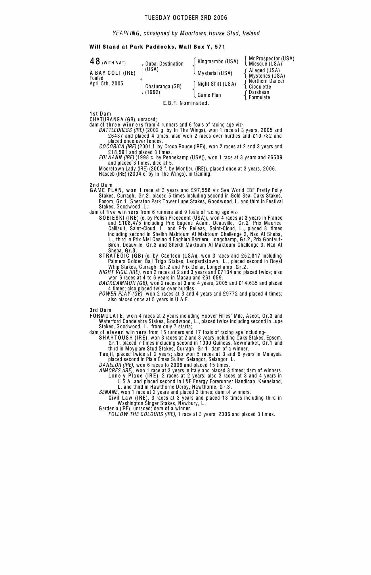 December Foal Sale 2003 lot 1116 F. by Montjeu (IRE) 2003, Moortown House Stud, Ireland=>Vendor 18,000 gns