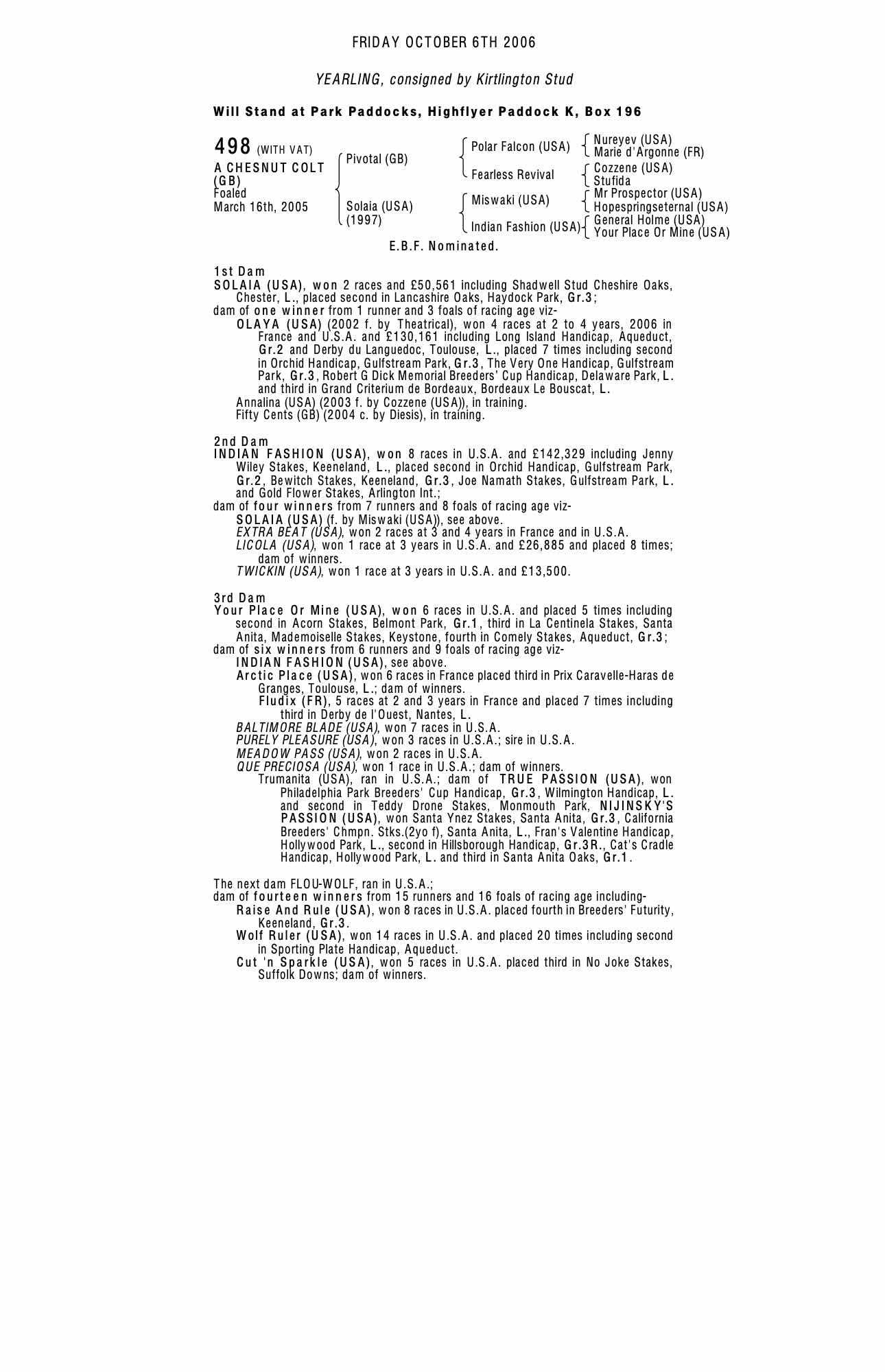 December Mare Sale 2006 lot 1571 Annalina (USA) (M. by Cozzene (USA)), Kirtlington Stud=>Vendor 80,000 gns