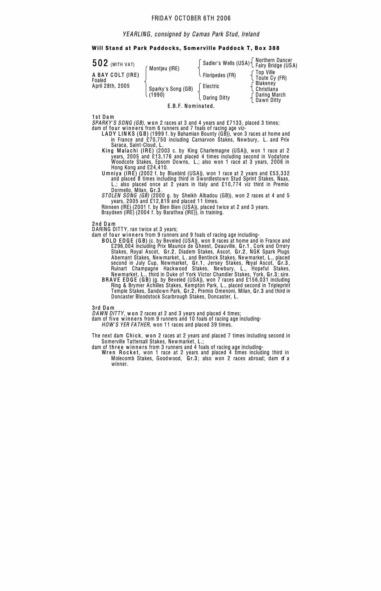 October Yearling Sale 2000 lot 1013 F. by Bahamian Bounty (GB) , Knockainey Stud, Ireland=>A Skiffington 22,000 gns