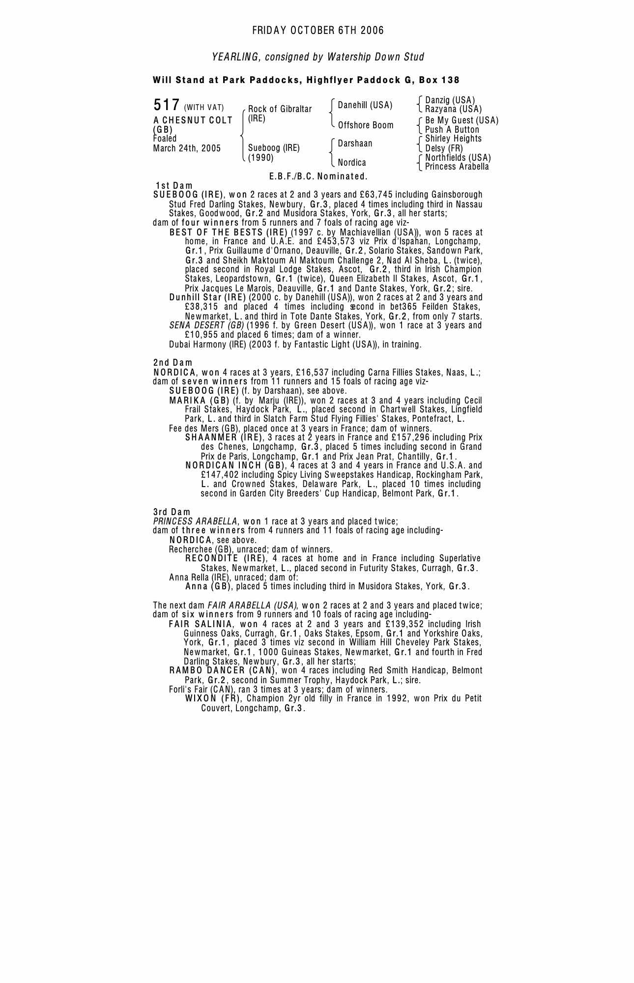 October Yearling Sale, Book 1 2010 lot 632 F. by Manduro (GER) 2009, Kirtlington Stud=>Lot Not Sold 95,000 gns