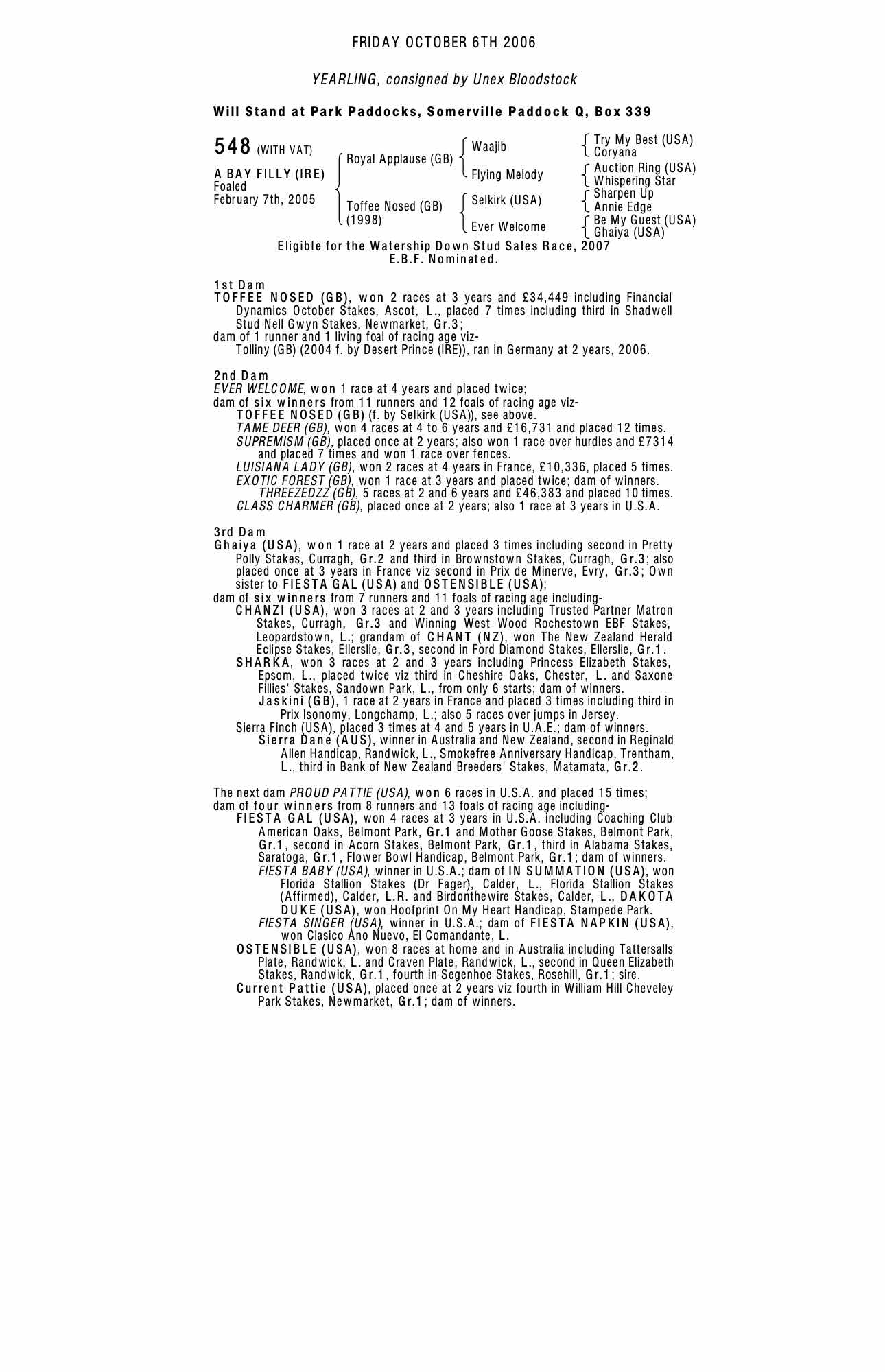 December Foal Sale 2007 lot 1658 F. by Dansili (GB) 2007, Unex Bloodstock=>Badgers Bloodstock 50,000 gns