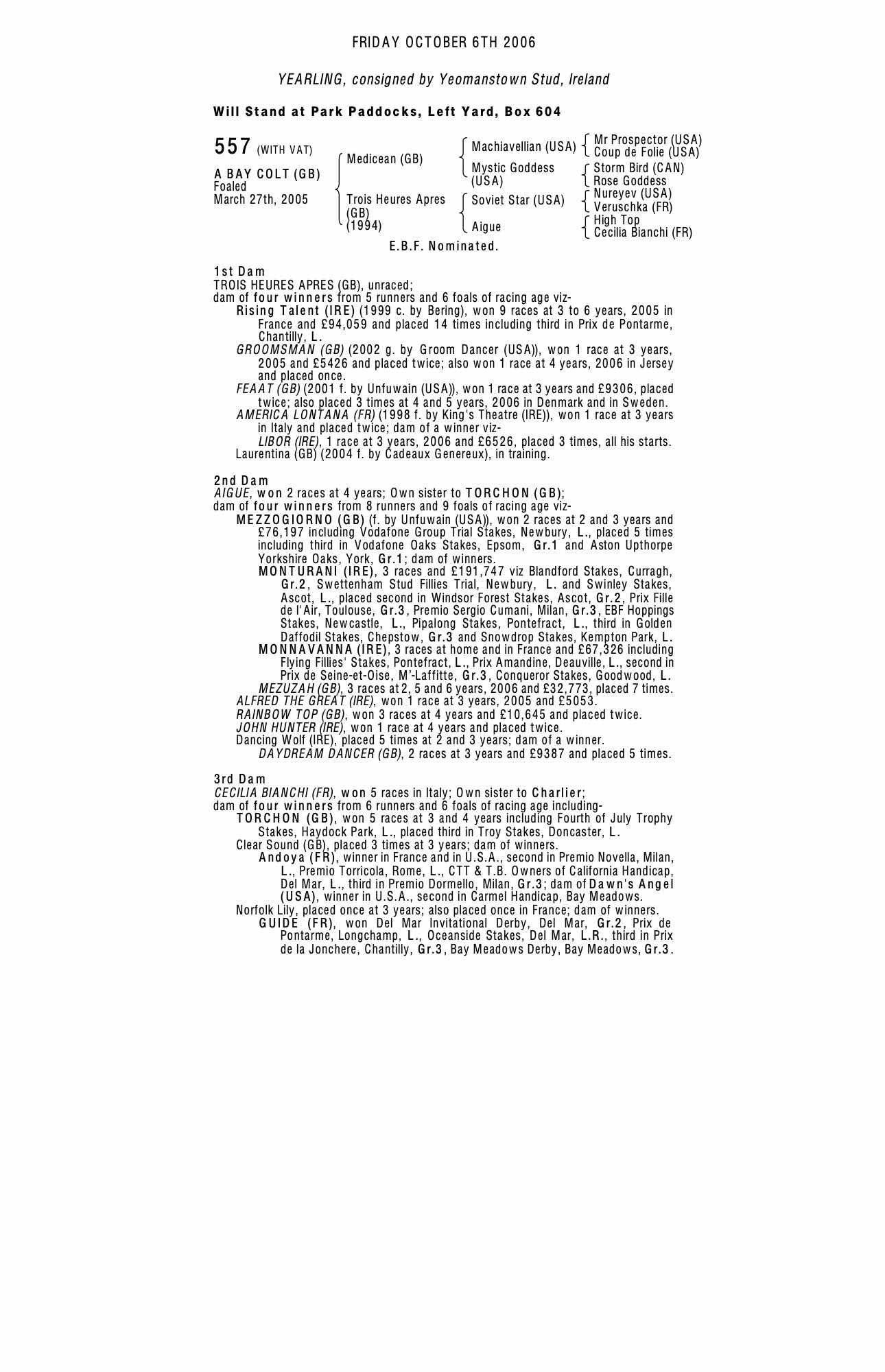October Yearling Sale, Book 2 2009 lot 865 F. by Marju (IRE) 2008, Lodge Park Stud, Ireland=>Rachel Boffey 92,000 gns