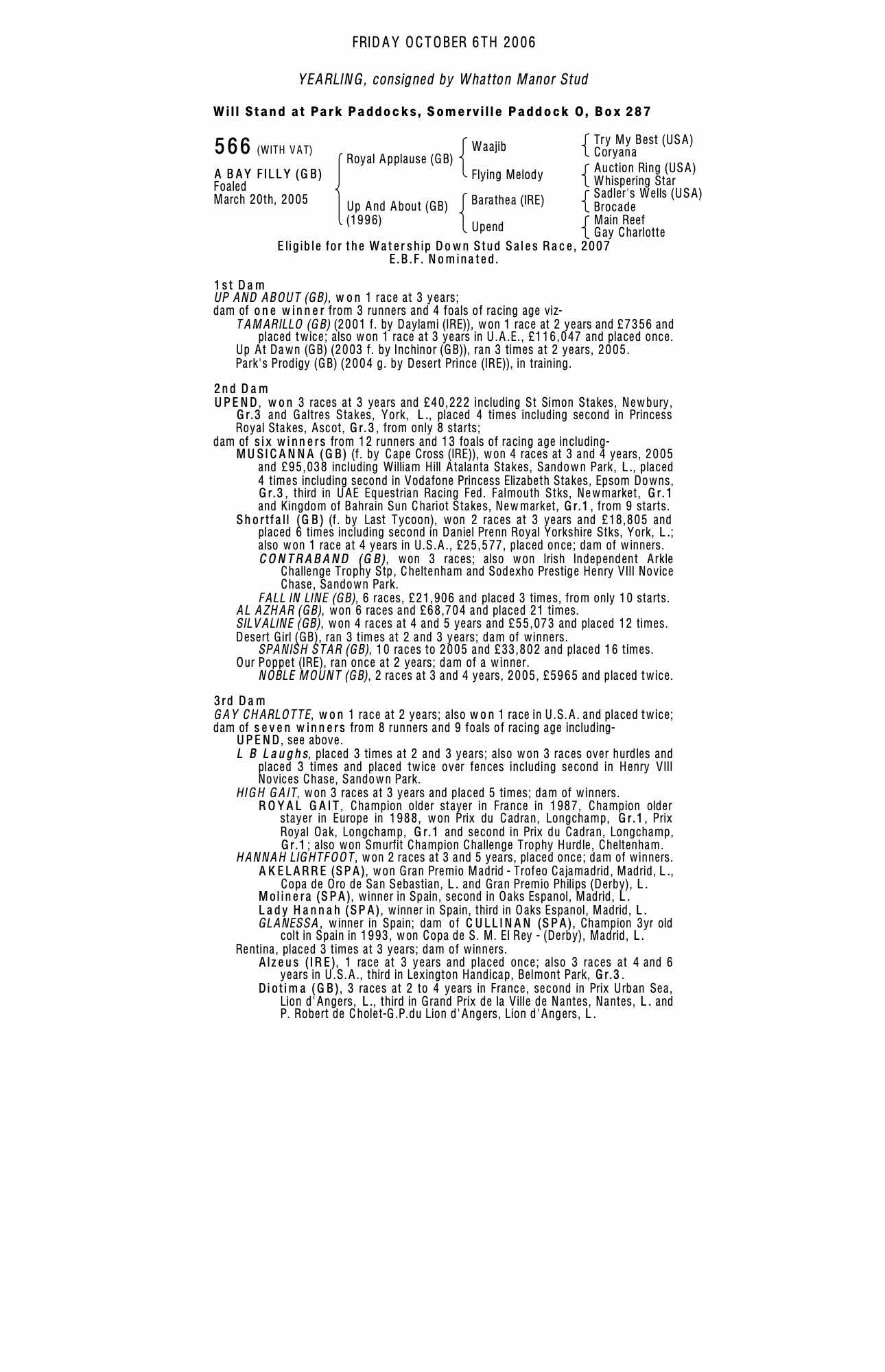 October Yearling Sale, Book 3 2007 lot 1561 F. by Noverre (USA) 2006, Whatton Manor Stud=>CF Wall 30,000 gns