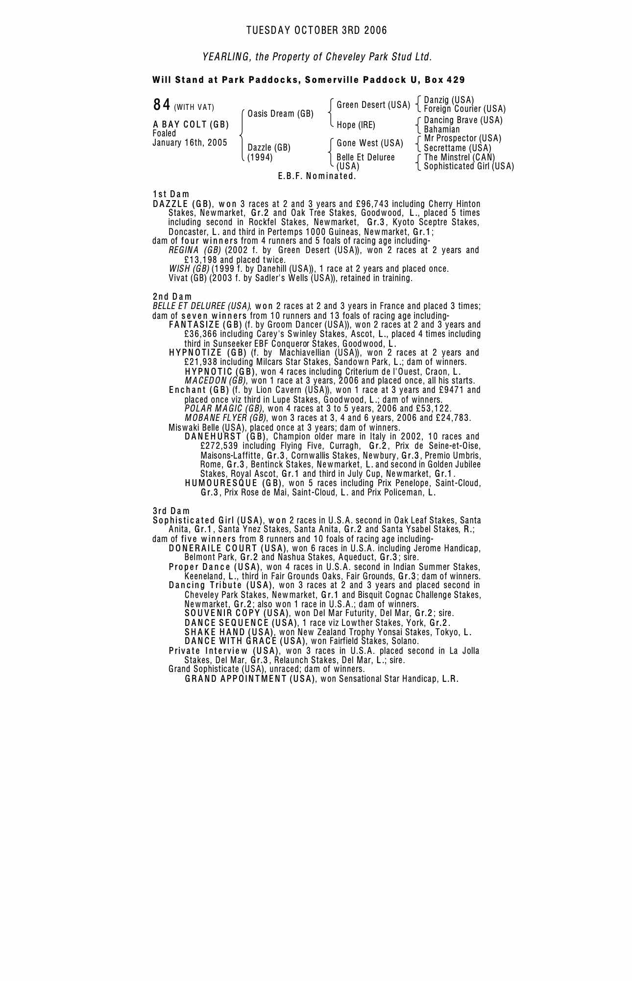 Autumn Horses in Training Sale 2006 lot 47 Dubois (GB) (G. by Sadler's Wells (USA)), Darley=>Margaret O'Toole 5,000 gns