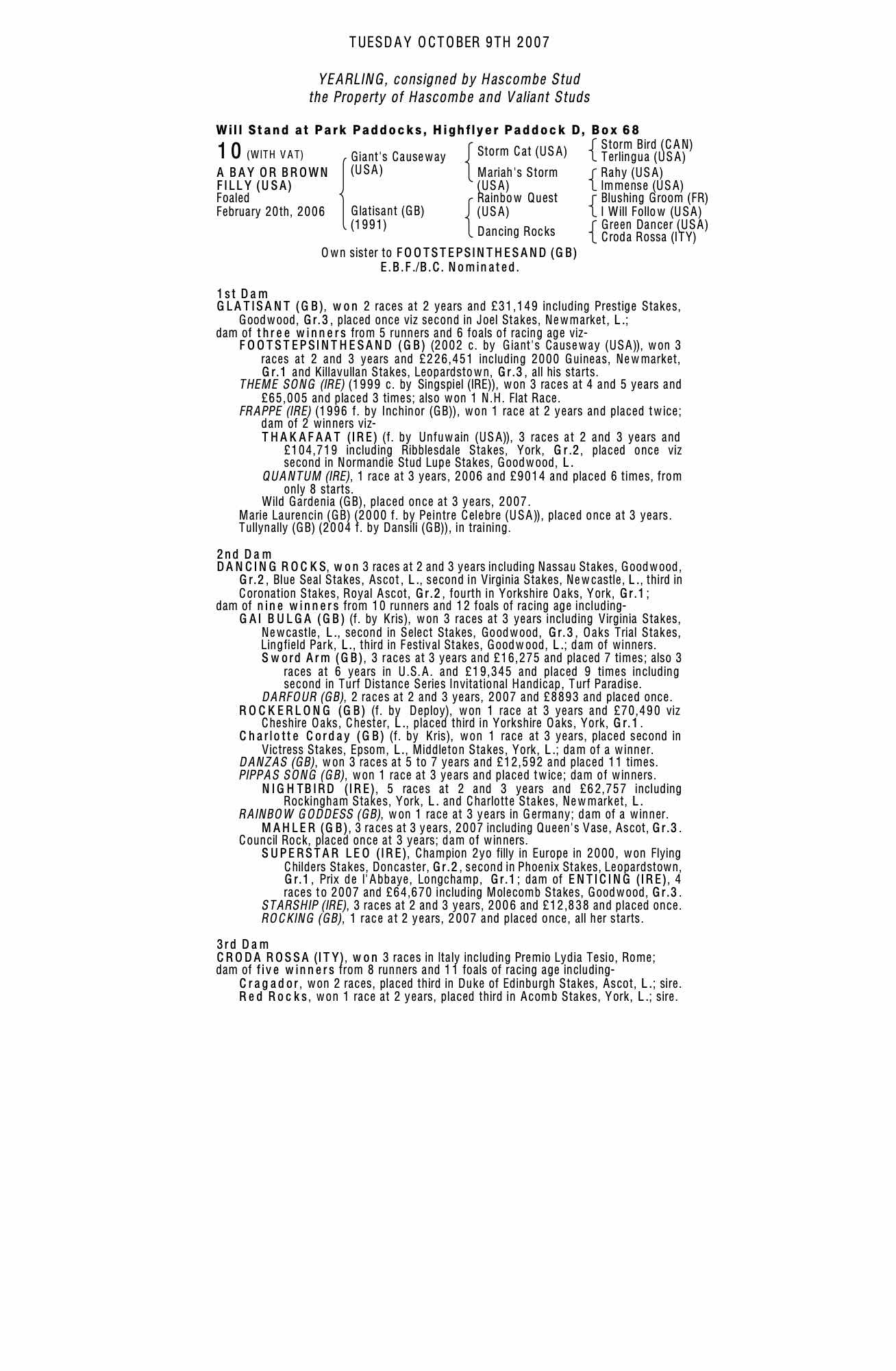 Consignor: Hascombe Stud