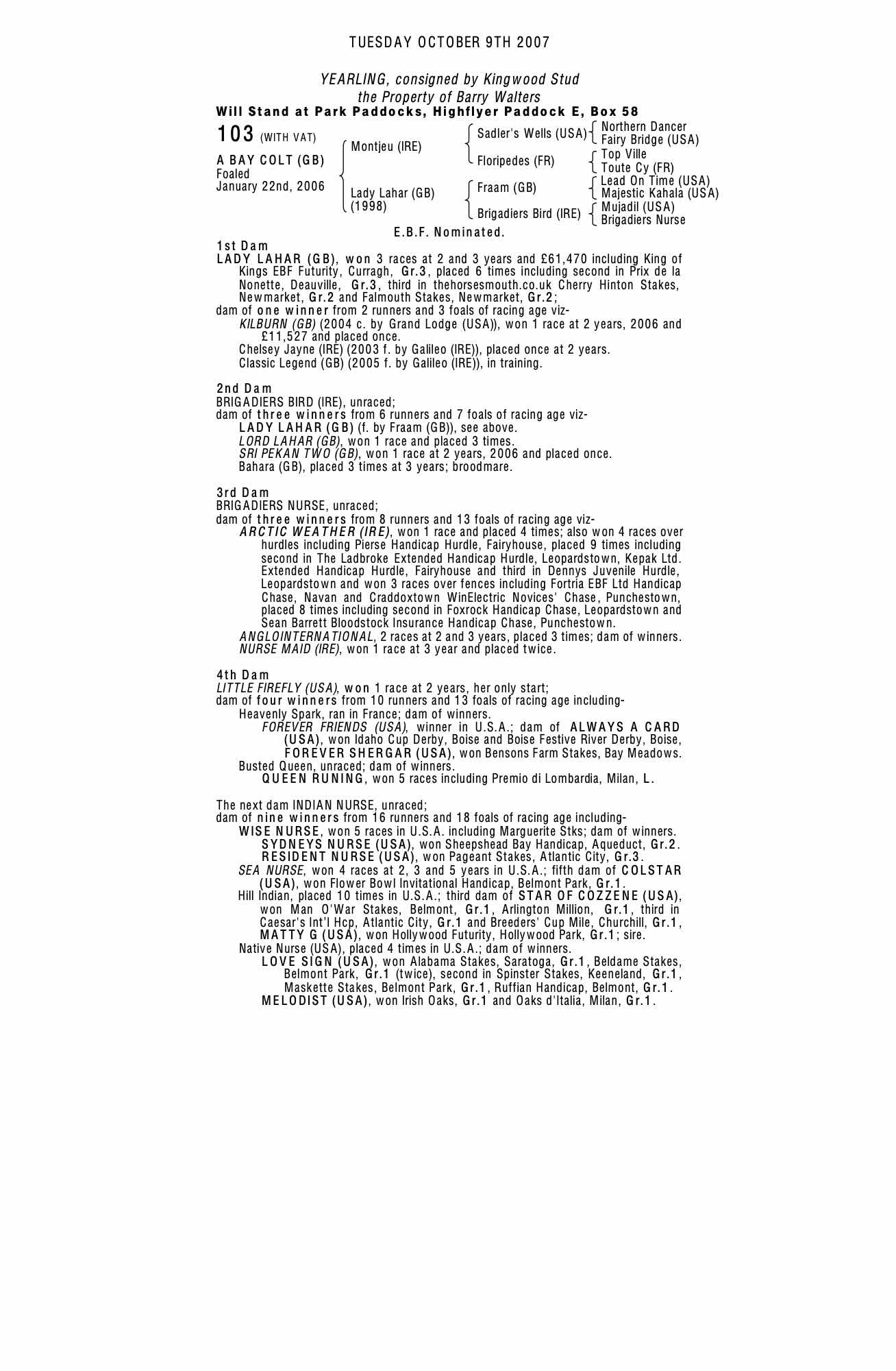 October Yearling Sale, Book 1 2004 lot 503 F. by Galileo (IRE) 2003, John Troy, Agent=>Lot Not Sold 22,000 gns