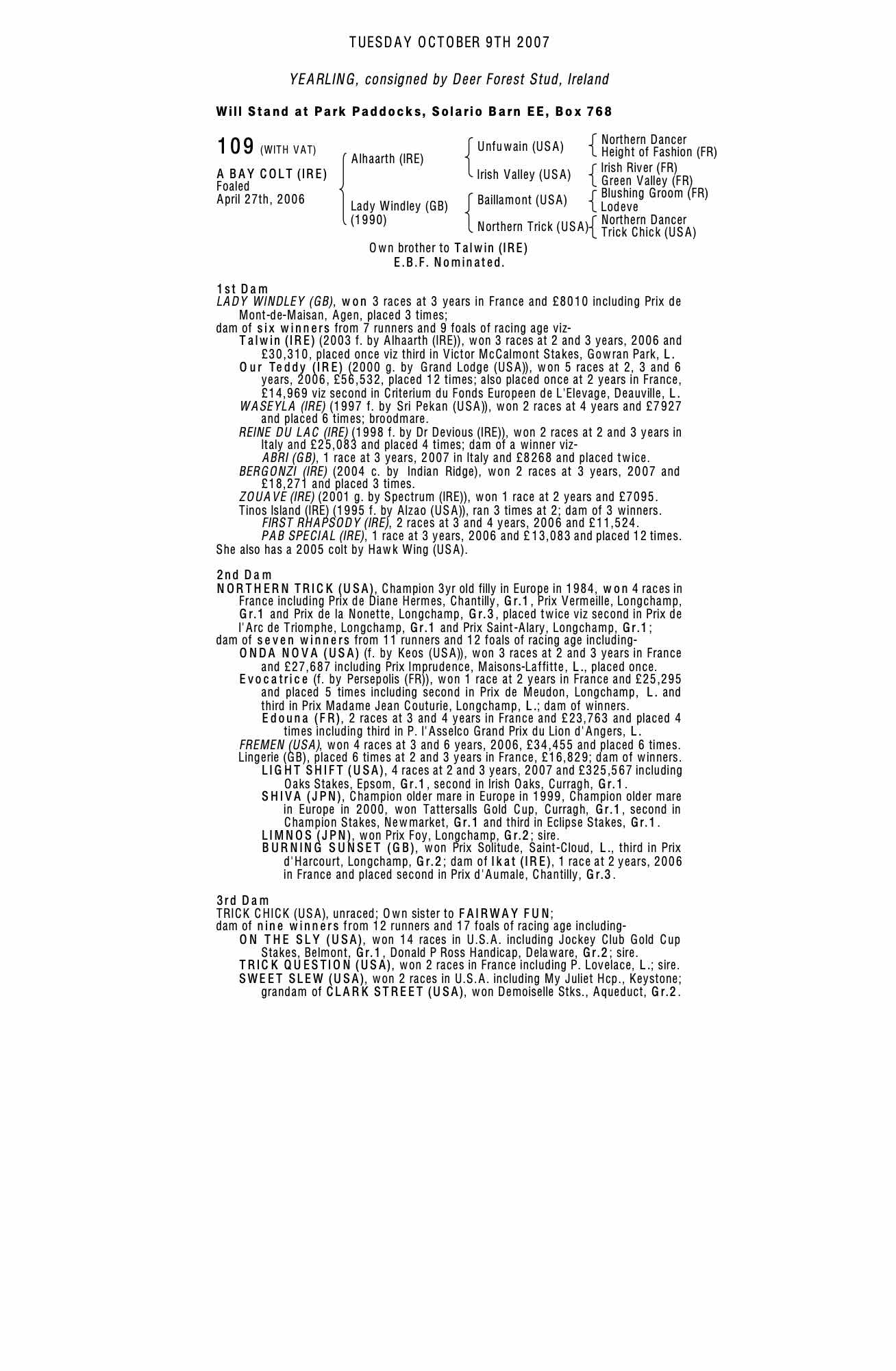 October Yearling Sale, Book 1 2009 lot 511 F. by Oratorio (IRE) 2008, Deer Forest Stud, Ireland=>Vendor 20,000 gns