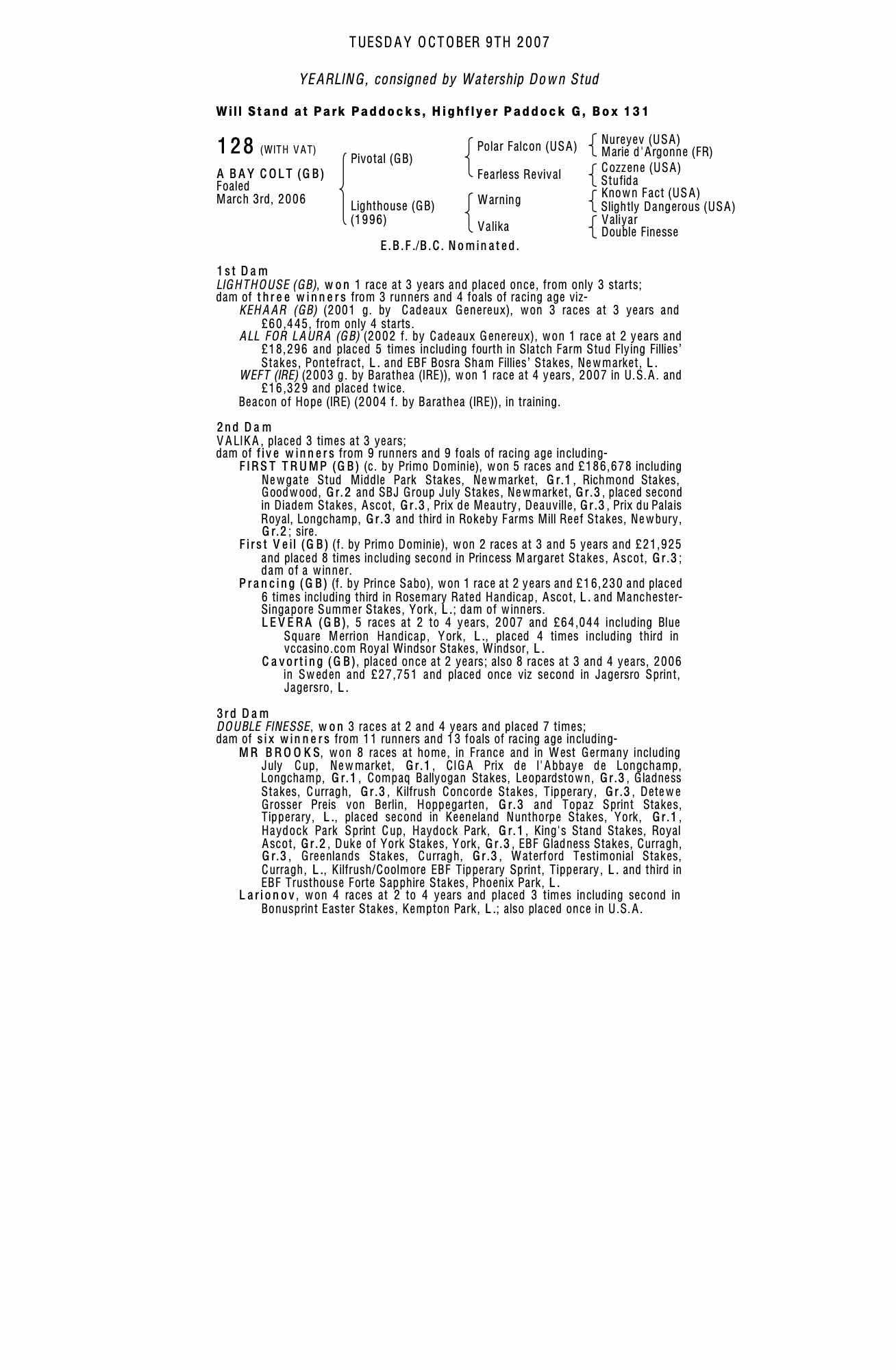 October Yearling Sale, Book 1 2008 lot 24 F. 2007, Watership Down Stud=>Stuart CWilliams 52,000 gns