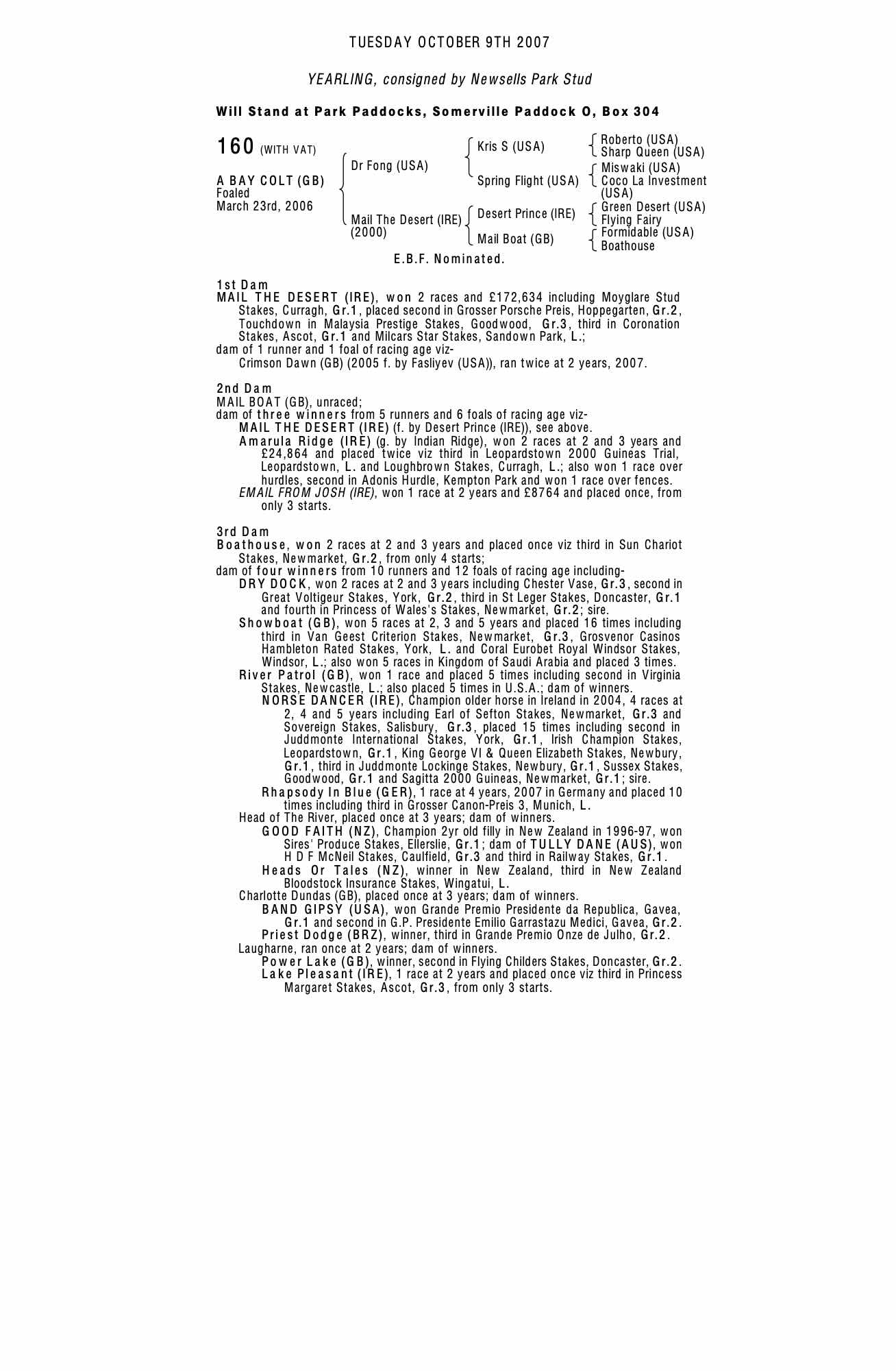 Flat Foal & Breeding Stock Sale 2018 lot 217 Pushkar (GB) (M. by Danehill Dancer (IRE)), Castledillon Stud (Agent)=>Lot Not Sold €9,500