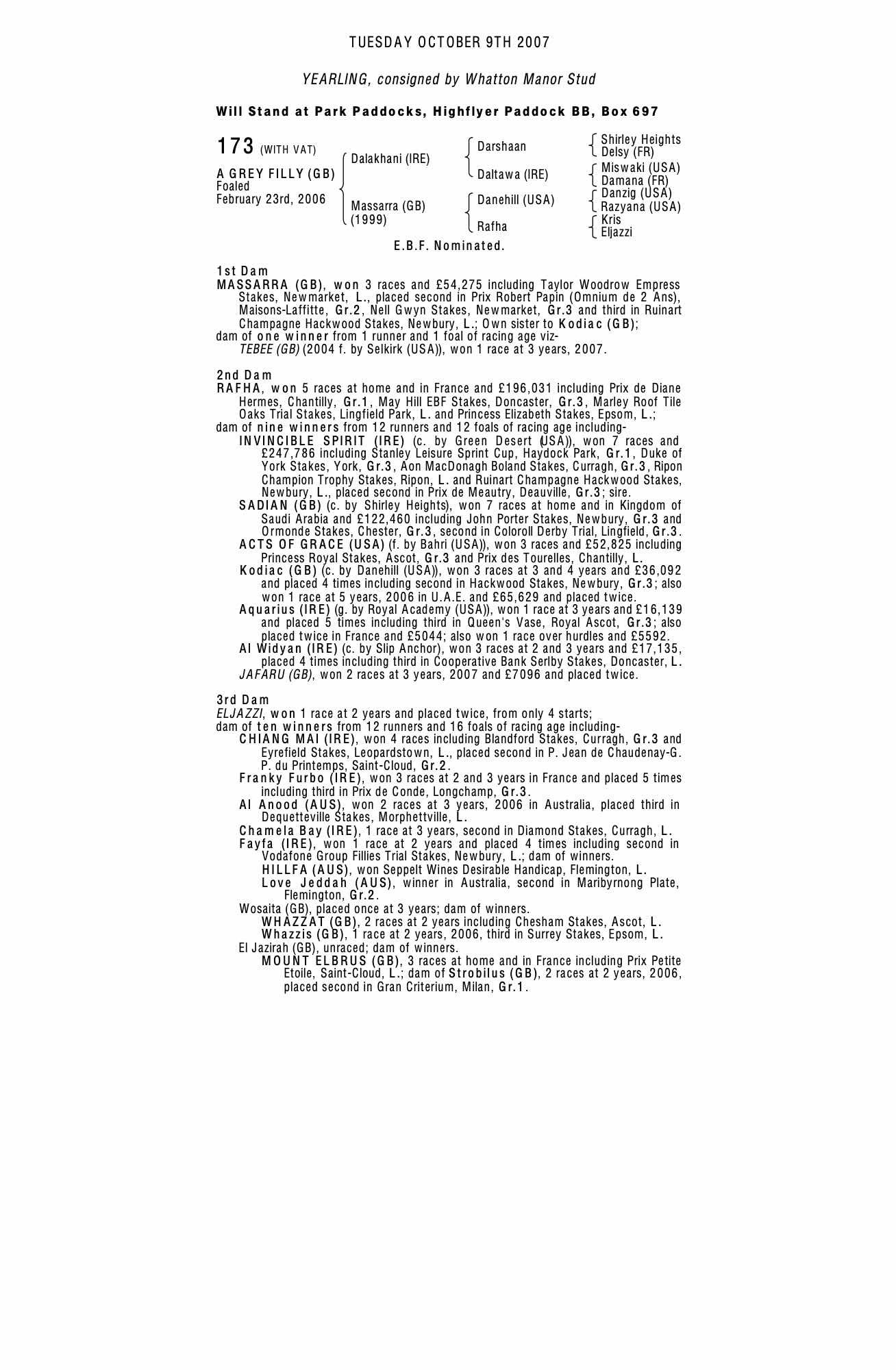 October Yearling Sale, Book 1 2005 lot 407 F. by Selkirk (USA) 2004, Voute Sales, Agent=>J Gosden 110,000 gns