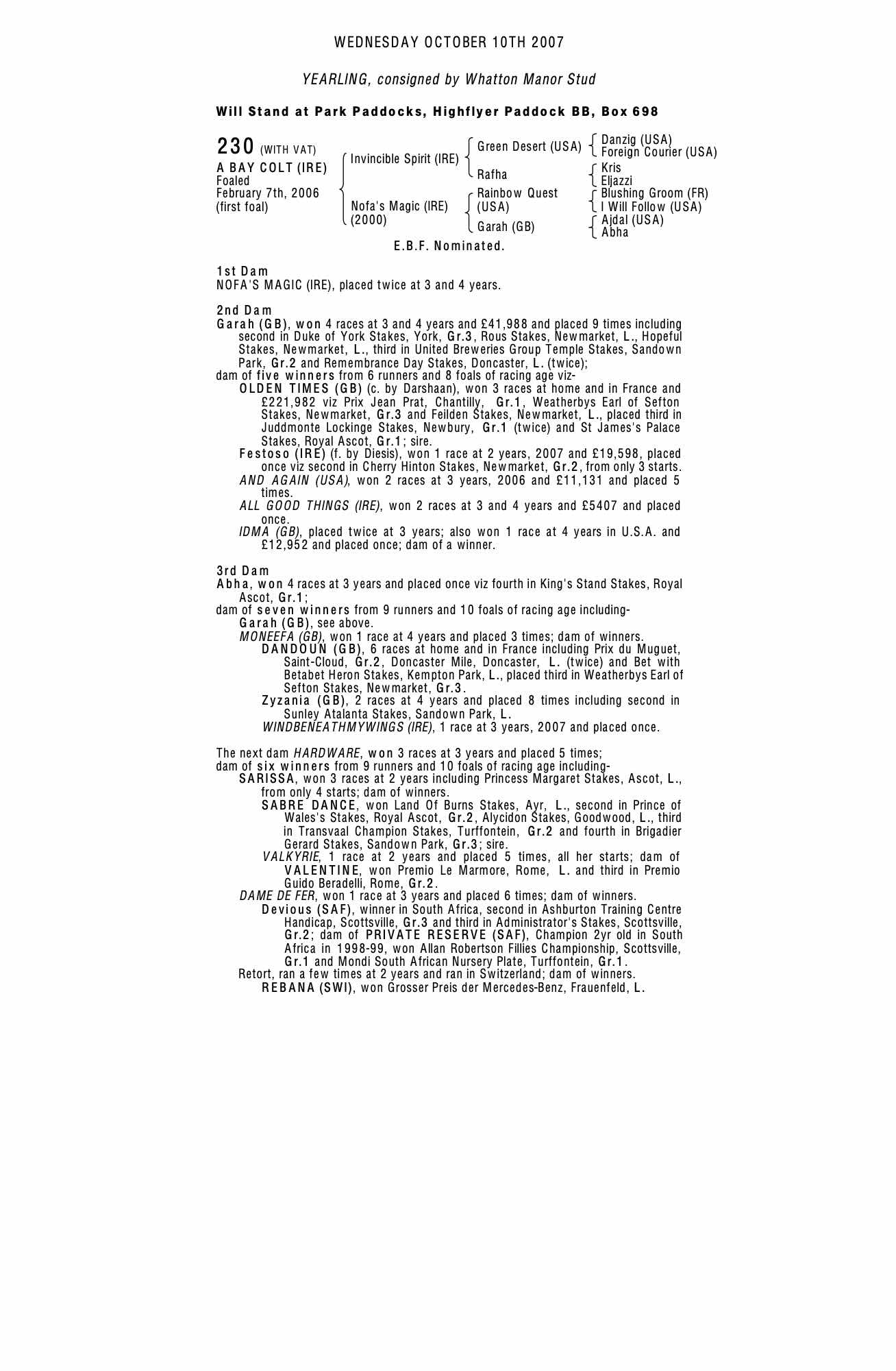 Invincible Spirit (IRE) / Nofa's Magic (IRE) B.C.